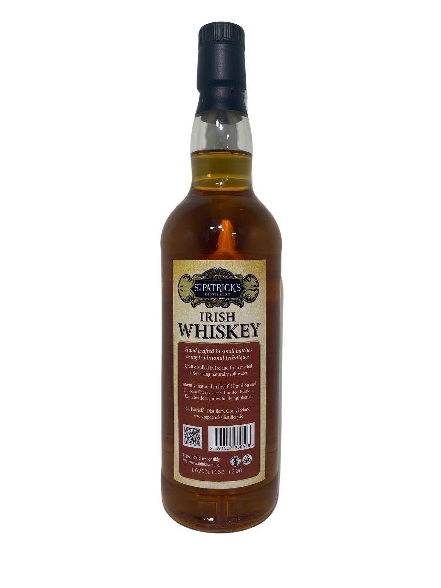 St. Patrick’s Irish Whiskey is matured for more than 3 years in first fill bourbon barrels using 3 year old grain blended with 21 year old malt.