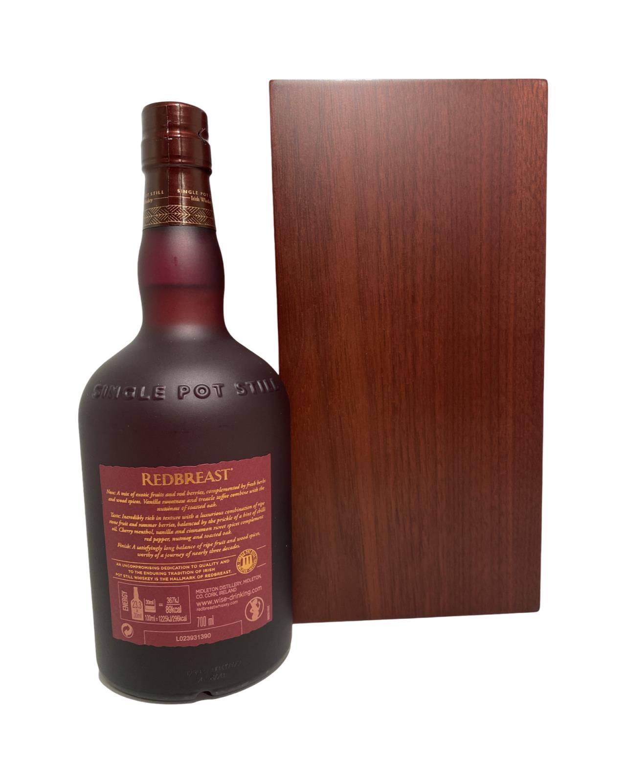 The oldest permanent member of the Redbreast range! This expression has been matured in both bourbon and sherry casks as well as including ruby port casks for the first time to bring even more complexity and depth. Rich flavours of exotic fruits, wood spices and wonderful sweet treacle notes. Redbreast was originally created in 1912 by the legendary bottlers and distillers Gilbey’s, and the early incarnations were always sourced from the old Jameson Distillery on Bow Street in Dublin. Over the years a variety of expressions were released that were bottled at either 10 years old or 12 years old. Once the Jameson Distillery became part of Irish Distillers supplies of casks to Gilbey’s dried up and the last ‘Old Redbreast’ bottlings were released in 1985. The brand was subsequently sold to Irish Distillers and was fortunately revived in 1991 using whiskey sourced from the Midleton Distillery. All the bottlings released since then have been made using Midleton whiskey and in the main these make use of high-quality Sherry casks, with a lesser amount of Bourbon casks in each vatting. Whiskey connoisseurs have fallen back in love with Redbreast whiskey and for many it is the quintessential Irish Single Pot Still whiskey.