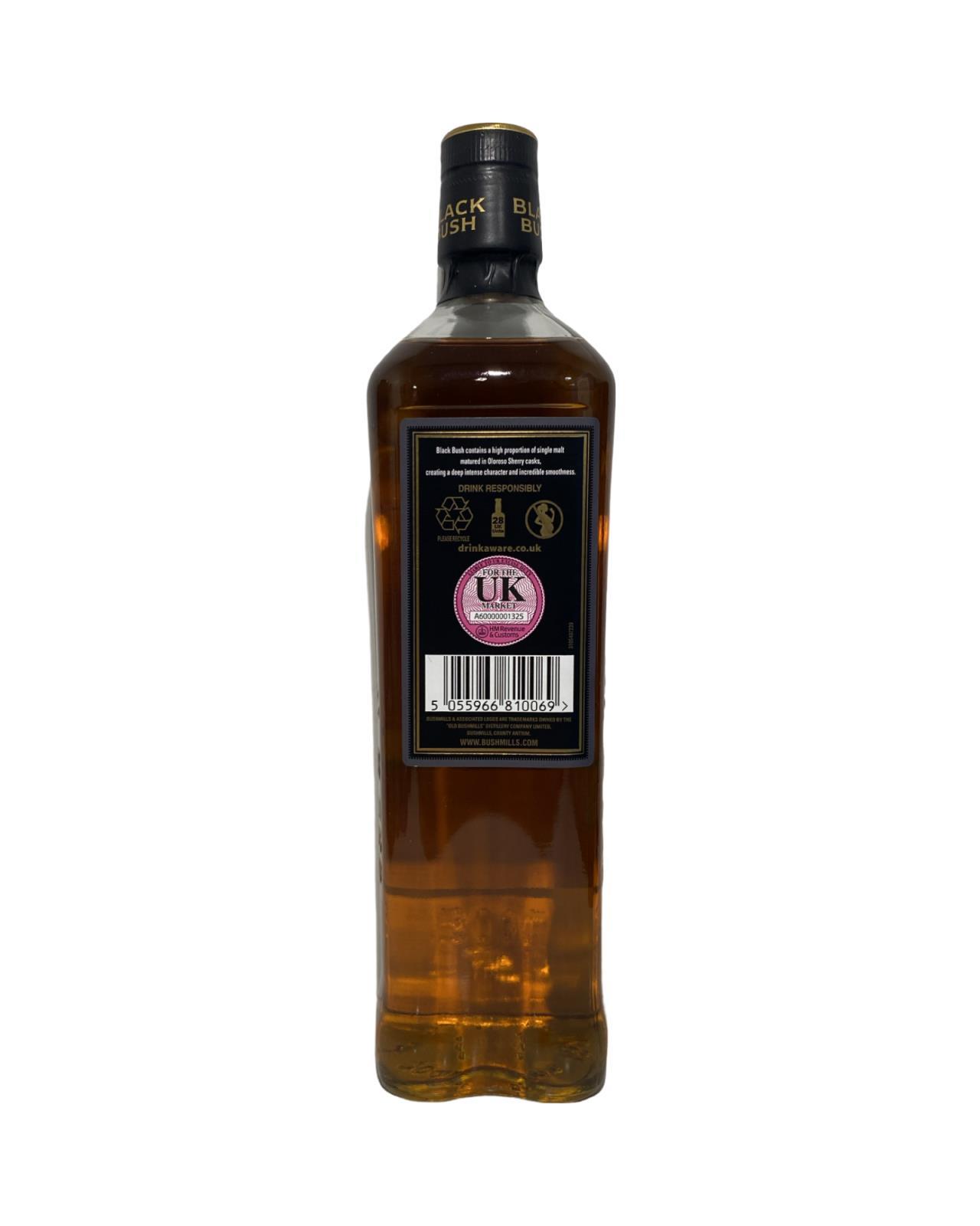 Black Bush is classed as the 'deluxe' blend from Bushmills and it has a lot of loyal fans across the world. Compared to the standard blend this has more depth, richness but also some woody hints. Maybe not as smooth as the Bushmills Original but it packs a lot more flavour. This is vatted from approximately 80% malt whiskey and 20% grain whiskey some of which is aged for as long as 18 years. A very high proportion of ex-sherry casks are used for the maturation giving the whiskey its signature dark colour and some delicious flavours of dried fruits, roasted nuts and caramel toffees. This still ranks as one of the best blended whiskeys in the world!