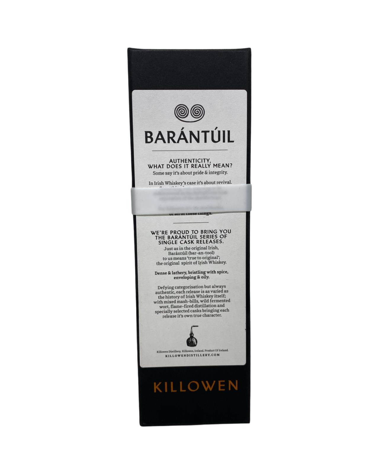 Being one of the most sought after bottles for collections with the likes of their dalriadan series and the experimental series Barantúil was sure to be no different.Killowen Barántúil Cask #KD024 is 3 year old mixed mash bill Irish whiskey bottled at a cask strength of 60.14% abv.