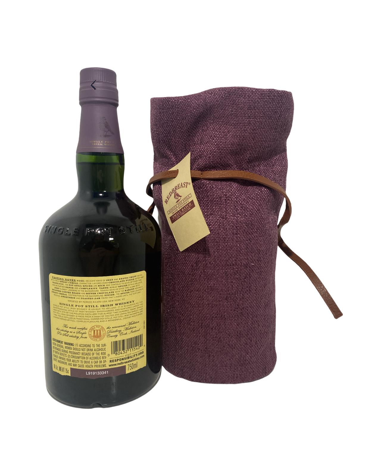 A very limited release of Redbreast. This small batch 14 Year old Single pot Still was bottled for Title Town. Redbreast was originally created in 1912 by the legendary bottlers and distillers Gilbey’s, and the early incarnations were always sourced from the old Jameson Distillery on Bow Street in Dublin. Over the years a variety of expressions were released that were bottled at either 10 years old or 12 years old. Once the Jameson Distillery became part of Irish Distillers supplies of casks to Gilbey’s dried up and the last ‘Old Redbreast’ bottlings were released in 1985. The brand was subsequently sold to Irish Distillers and was fortunately revived in 1991 using whiskey sourced from the Midleton Distillery. All the bottlings released since then have been made using Midleton whiskey and in the main these make use of high-quality Sherry casks, with a lesser amount of Bourbon casks in each vatting. Whiskey connoisseurs have fallen back in love with Redbreast whiskey and for many it is the quintessential Irish Single Pot Still whiskey.