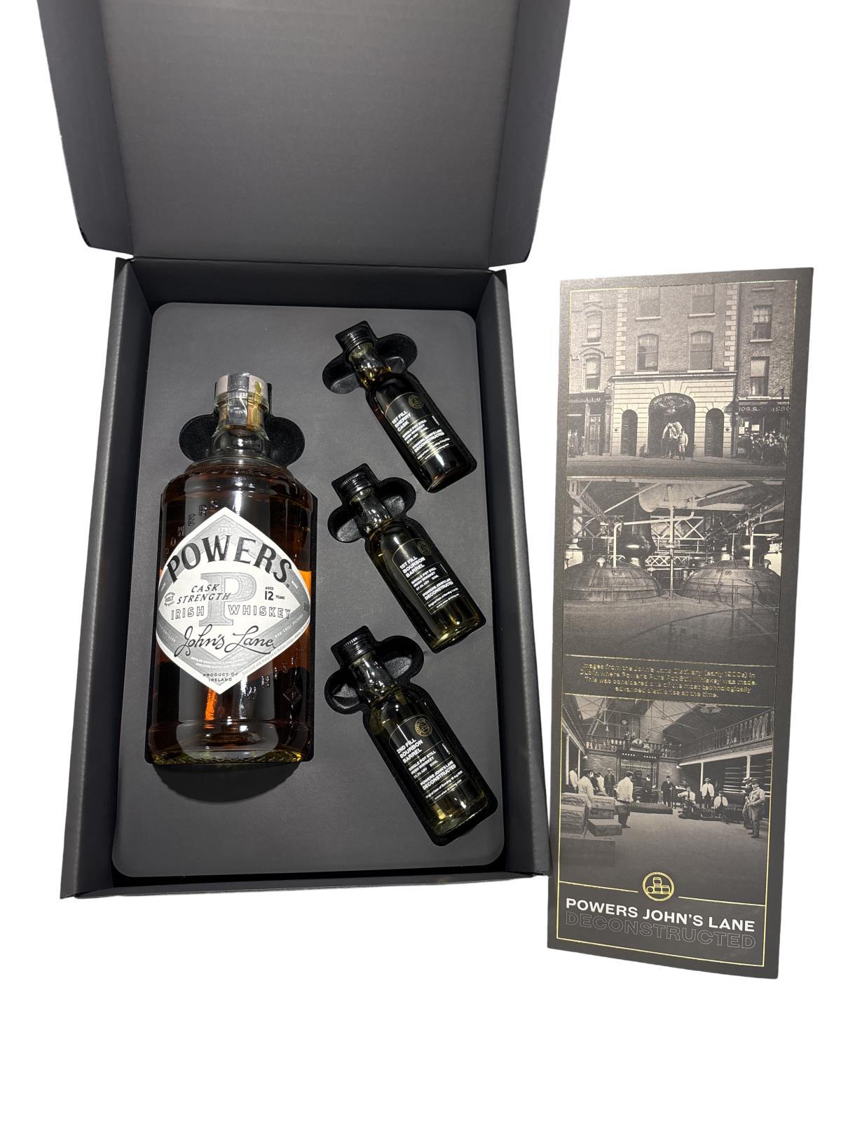 The Midleton Distillerys barrel club is a group that was created in 2021 with a limit of 500 members. The fourth exclusive that has been sent out to members is this presentation pack of a bottle of Powers John's Lane Cask Strength with 3 samples of the Deconstructed Powers John's Lane elements. Launching 12 years after the introduction of Powers John’s Lane whiskey, this twelve-year-old cask strength edition will be batch-released each year. This release is bursting with flavour and character. Matured for at least 12 years, mainly in first fill American bourbon casks with a small contribution of distillate which has been matured in Oloroso sherry butts. Lots of rich pot still spice with vanilla, manuka honey, and dried apricot on the palate.