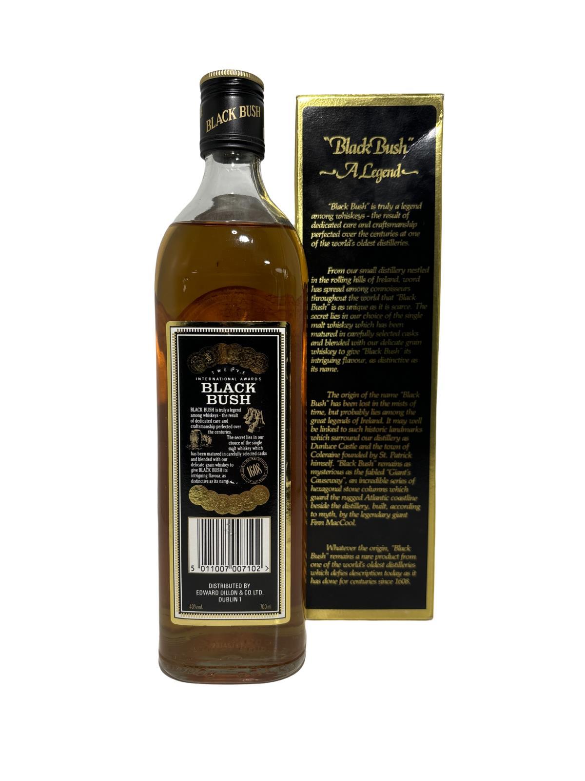 Black Bush is classed as the 'deluxe' blend from Bushmills and it has a lot of loyal fans across the world. Compared to the standard blend this has more depth, richness but also some woody hints. Maybe not as smooth as the Bushmills Original but it packs a lot more flavour. This is vatted from approximately 80% malt whiskey and 20% grain whiskey some of which is aged for as long as 18 years. A very high proportion of ex-sherry casks are used for the maturation giving the whiskey its signature dark colour and some delicious flavours of dried fruits, roasted nuts and caramel toffees. This still ranks as one of the best blended whiskeys in the world!