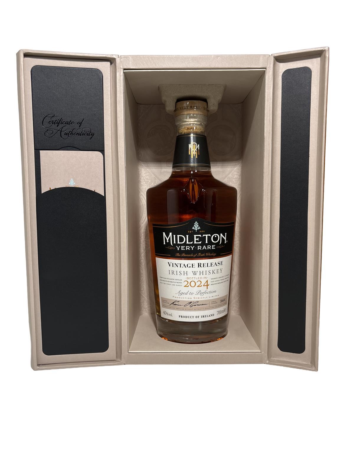 The 2024 of this renowned collection is adorned with the signature of Master Distiller, Kevin O’Gorman. After months of exploration, O’Gorman crafted a balanced blend of rare and hand-selected single pot still and single grain Irish whiskeys from Midleton’s exclusive inventory to create this truly special release. This years release has new more sustainable packaging. Showing the new way midleton is thinking to combat climate change. The Midleton Very Rare range of whiskeys is a collection of highly regarded Irish whiskeys crafted at the Midleton Distillery in County Cork, Ireland. With a reputation for excellence, these whiskeys are known for their exceptional quality, craftsmanship, and limited availability. Characterized by smoothness, complexity, and depth of flavour, Midleton Very Rare often exhibits notes of ripe fruits, honey, vanilla, spices, and oak. The component casks are typically aged for around 12-27 years but each yearly batch is unique and for this reason the whiskeys are highly collectible. To this day the Midleton Very Rare series is still regarded as the pinnacle and benchmark for ultra-premium blended Irish whiskeys.