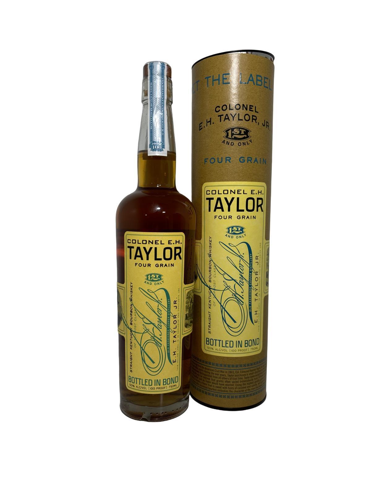 A limited release in 2017, E.H. Taylor Four Grain is made from a "distinct bourbon recipe" using corn, rye, wheat, and malted barley. It was distilled in 2005 and entered into the barrel at 104 proof. According to Buffalo Trace, these are the four grains E.H.Taylor would have had access to in the late 1800s, which is why they were ultimately chosen for this release. In the company's press release, master distiller Harlen Wheatley states, "We wanted to extract everything we like from both the rye and the wheat mashbills we currently use and combine them to see how they react. Not surprisingly, it added complexity to the finished product."