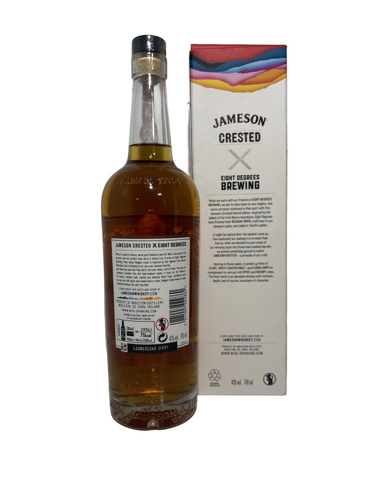 Belgian tripel meets a triple distilled whiskey in this must-try new release from Jameson! Made by maturing Jameson Crested in beer-soaked casks provided by Eight Degrees Brewing. The beer casks impart flavours of cloves, roasted malt, vanilla, and delicate floral hops, combined with its own pot still spice and sweet sherry notes. A must-try for fans of Jameson!