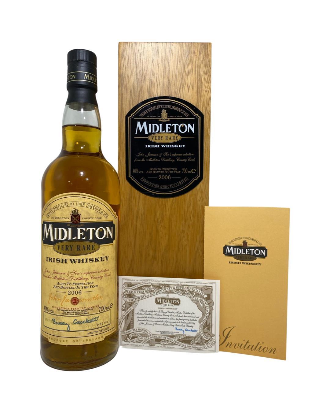 The Midleton Very Rare 2006, is a bottling brought out by the Midleton Distillery in Co. Cork. The ‘Midleton Very Rare’ range was launched in 1984 and a new vintage has been released every year since then. Barry Crockett started off the ‘Midleton Very Rare’ range while he was the Master Distiller of Midleton Distillery. The Bottle and box are in great condition. The Midleton Very Rare range of whiskeys is a collection of highly regarded Irish whiskeys crafted at the Midleton Distillery in County Cork, Ireland. With a reputation for excellence, these whiskeys are known for their exceptional quality, craftsmanship, and limited availability. Characterized by smoothness, complexity, and depth of flavour, Midleton Very Rare often exhibits notes of ripe fruits, honey, vanilla, spices, and oak. The component casks are typically aged for around 12-27 years but each yearly batch is unique and for this reason the whiskeys are highly collectible. To this day the Midleton Very Rare series is still regarded as the pinnacle and benchmark for ultra-premium blended Irish whiskeys.
