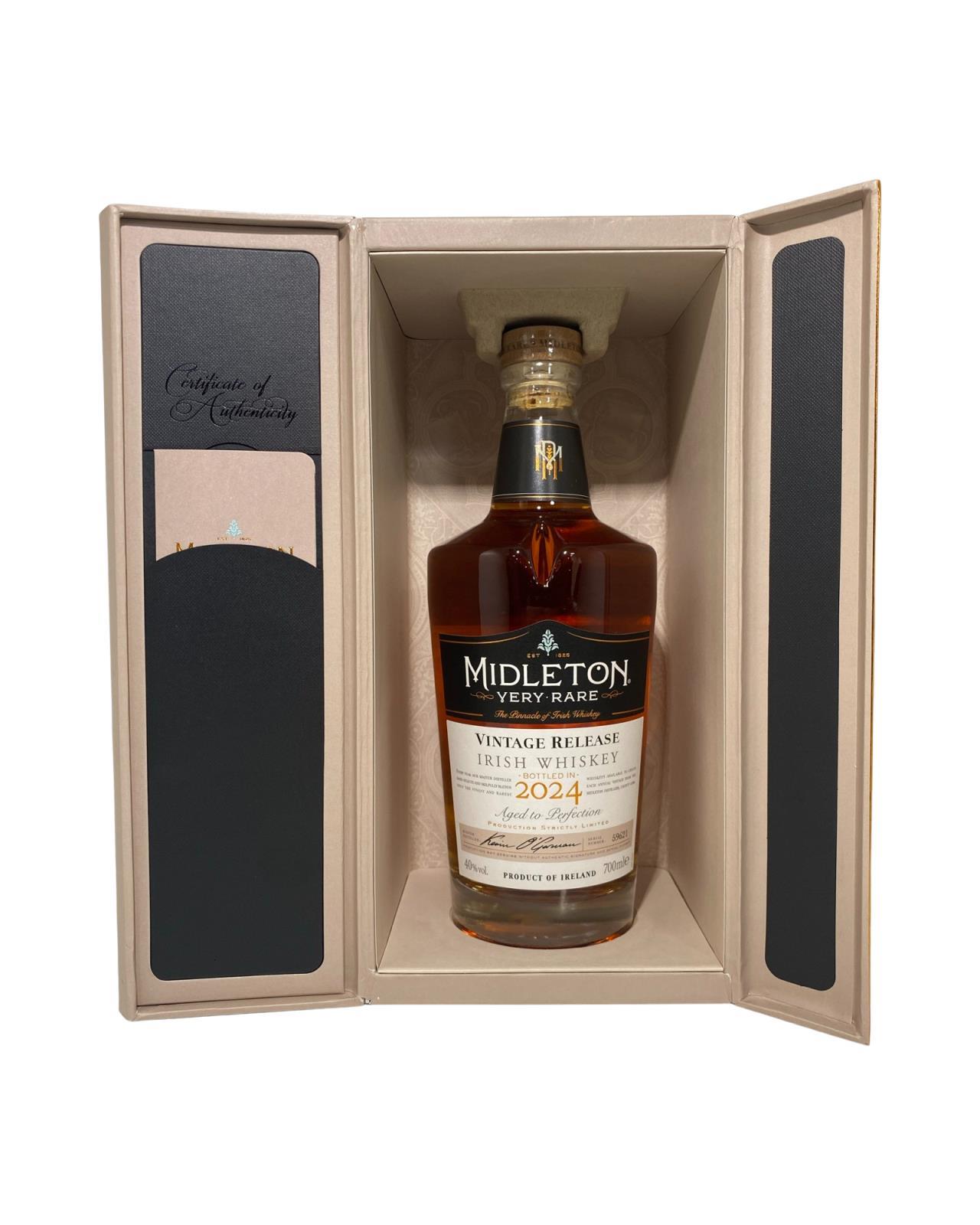 The 2024 of this renowned collection is adorned with the signature of Master Distiller, Kevin O’Gorman. After months of exploration, O’Gorman crafted a balanced blend of rare and hand-selected single pot still and single grain Irish whiskeys from Midleton’s exclusive inventory to create this truly special release. This years release has new more sustainable packaging. Showing the new way midleton is thinking to combat climate change. The Midleton Very Rare range of whiskeys is a collection of highly regarded Irish whiskeys crafted at the Midleton Distillery in County Cork, Ireland. With a reputation for excellence, these whiskeys are known for their exceptional quality, craftsmanship, and limited availability. Characterized by smoothness, complexity, and depth of flavour, Midleton Very Rare often exhibits notes of ripe fruits, honey, vanilla, spices, and oak. The component casks are typically aged for around 12-27 years but each yearly batch is unique and for this reason the whiskeys are highly collectible. To this day the Midleton Very Rare series is still regarded as the pinnacle and benchmark for ultra-premium blended Irish whiskeys.
