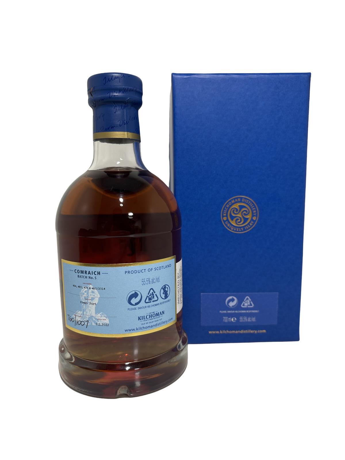 Kilchoman Comraich Batch 5 is a vatting matured in fresh port casks, all over seven years of age. The Kilchoman spirit has spent its full maturation term in fresh port hogsheads. Bottled at natural cask strength of 55.5% ABV.