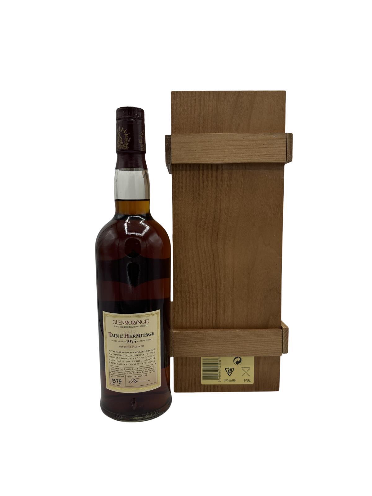 An exceptional 28 year old Highland single malt that was laid to rest in 1975 at the Glenmorangie distillery and bottled in 2003 complete with sublime wooden presentation case.This rare malt was finished for four years in wine barrels from Tain L'Hermitage in the famous Rhone Valley wine region of France, resulting in an unique malt of outstanding character.
