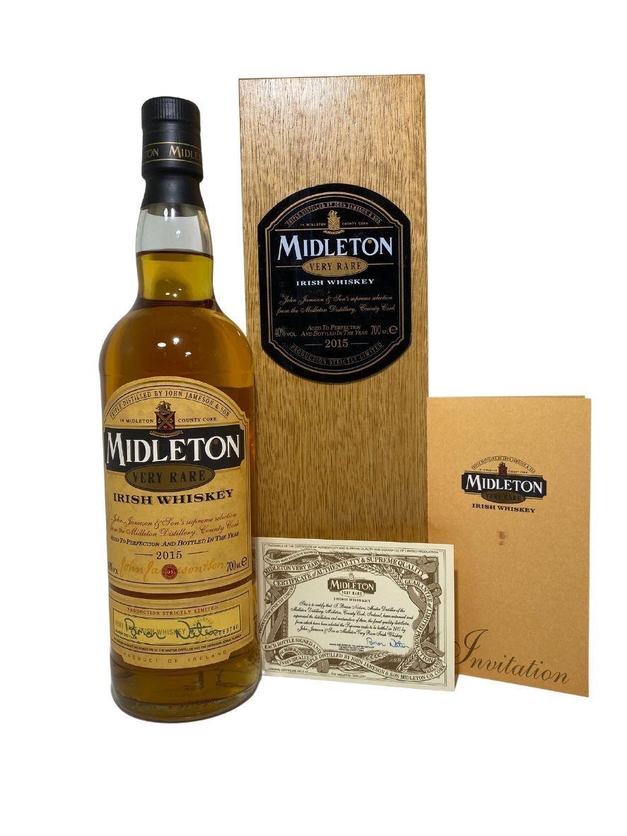 The Midleton Very Rare 2015, is a bottling brought out by the Midleton Distillery in Co. Cork. The ‘Midleton Very Rare’ range was launched in 1984 and a new vintage has been released every year since then. Barry Crockett started off the ‘Midleton Very Rare’ range while he was the Master Distiller of Midleton Distillery, in 2013 Barry Crockett retired from his role of Master Distiller. From 2014 onwards Brian Nation has been creating the ‘Midleton Very Rare’ range, maintaining its role as standard-bearer and pinnacle of Irish Whiskey. The bottle and gift box in great condition also include the cert and distillery invite. Bottle number 5156