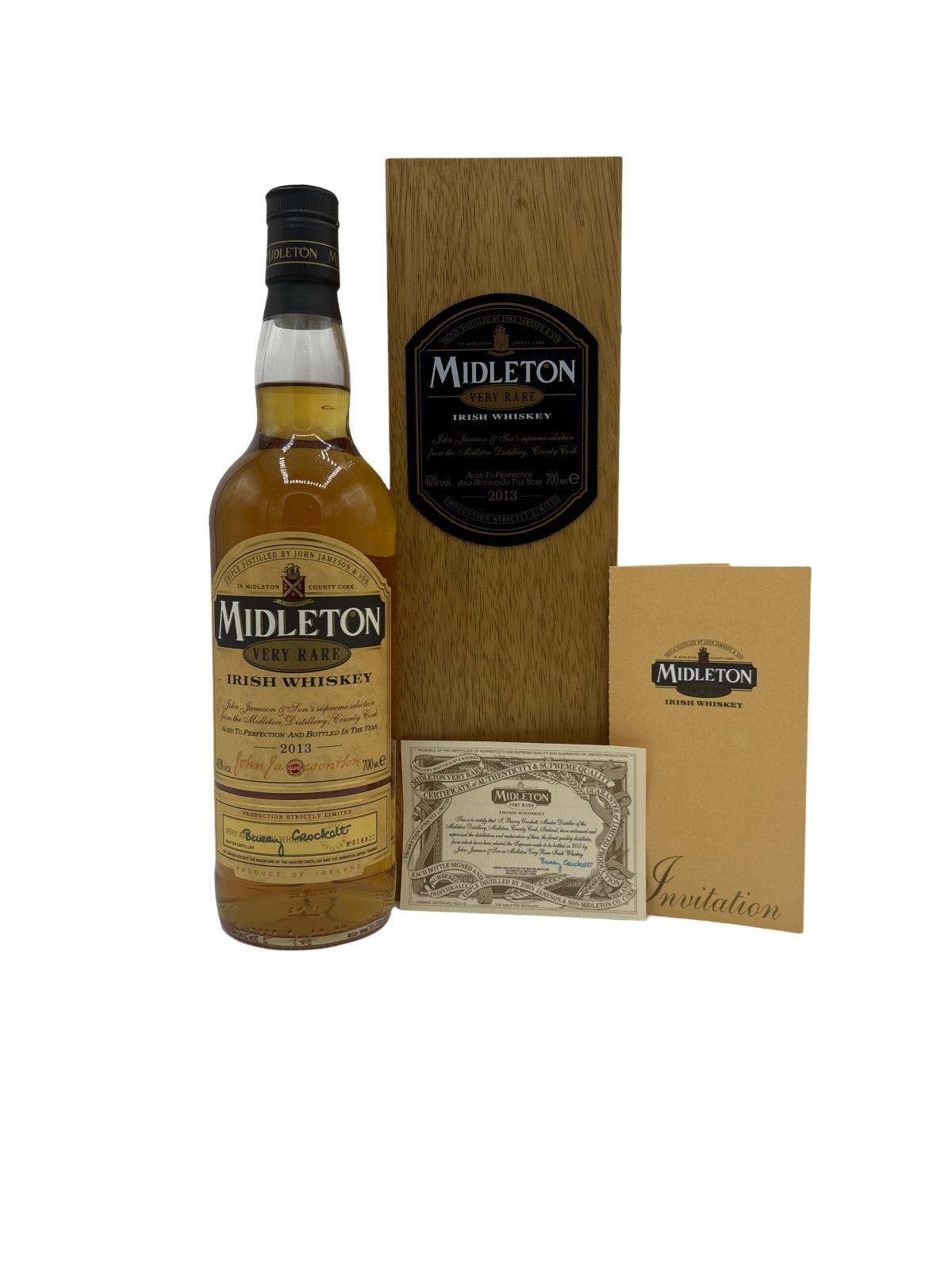 The Midleton Very Rare 2013, is a bottling brought out by the Midleton Distillery in Co. Cork. The ‘Midleton Very Rare’ range was launched in 1984 and a new vintage has been released every year since then. Barry Crockett started off the ‘Midleton Very Rare’ range while he was the Master Distiller of Midleton Distillery.The Bottle and box are in great condition. The Midleton Very Rare range of whiskeys is a collection of highly regarded Irish whiskeys crafted at the Midleton Distillery in County Cork, Ireland. With a reputation for excellence, these whiskeys are known for their exceptional quality, craftsmanship, and limited availability. Characterized by smoothness, complexity, and depth of flavour, Midleton Very Rare often exhibits notes of ripe fruits, honey, vanilla, spices, and oak. The component casks are typically aged for around 12-27 years but each yearly batch is unique and for this reason the whiskeys are highly collectible. To this day the Midleton Very Rare series is still regarded as the pinnacle and benchmark for ultra-premium blended Irish whiskeys.