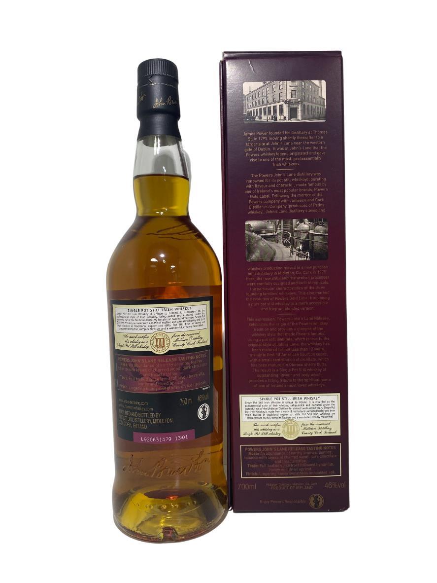 Powers John's Lane was an instant hit when it was first released in 2011, eventually winning 'Irish Whiskey of the Year' in the 2012 edition of Jim Murray's Whisky Bible. It is comprised mostly of a robust, heavy pot still spirit and is predominantly aged in ex-bourbon casks with a little sherry cask ageing. Intended to faithfully recreate the old style of whiskey once made in Dublin, it's one that Irish whiskey lovers keeping coming back to.