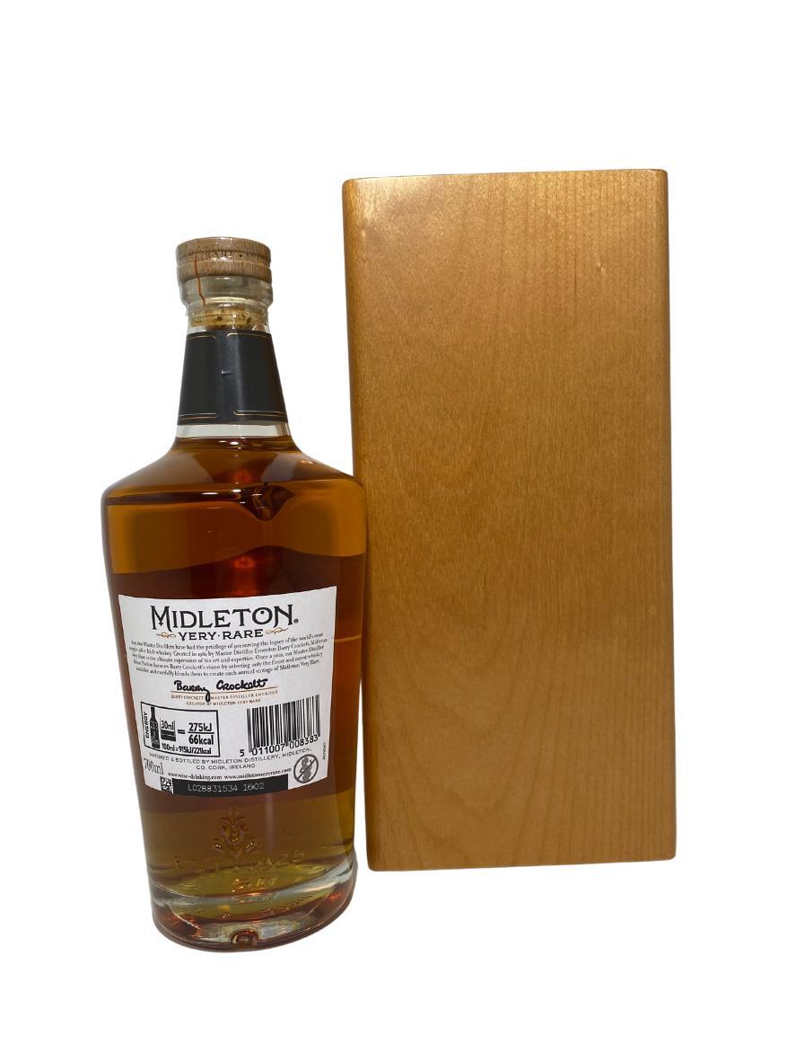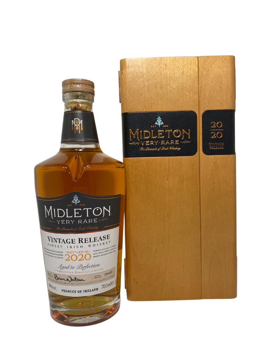 The Midleton Very Rare 2020, is a bottling brought out by the Midleton Distillery in Co. Cork. The ‘Midleton Very Rare’ range was launched in 1984 and a new vintage has been released every year since then. Barry Crockett started off the ‘Midleton Very Rare’ range while he was the Master Distiller of Midleton Distillery, in 2013 Barry Crockett retired from his role of Master Distiller. From 2014 onwards Brian Nation has been creating the ‘Midleton Very Rare’ range, maintaining its role as standard-bearer and pinnacle of Irish Whiskey. The bottle and gift box in great condition also include the cert and distillery invite. Bottle 9449