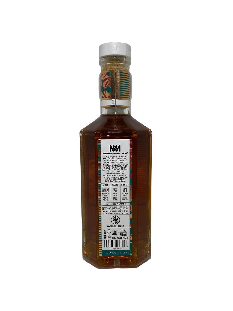 A limited edition release from the ever adventurous team at Method & Madness Method. This Single Pot Still Irish Whiskey has been initially matured in ex-Bourbon barrels, imparting flavours of “malt and biscuit”, before being finished in Mulberry cask, imparting delightful vanilla goodness.