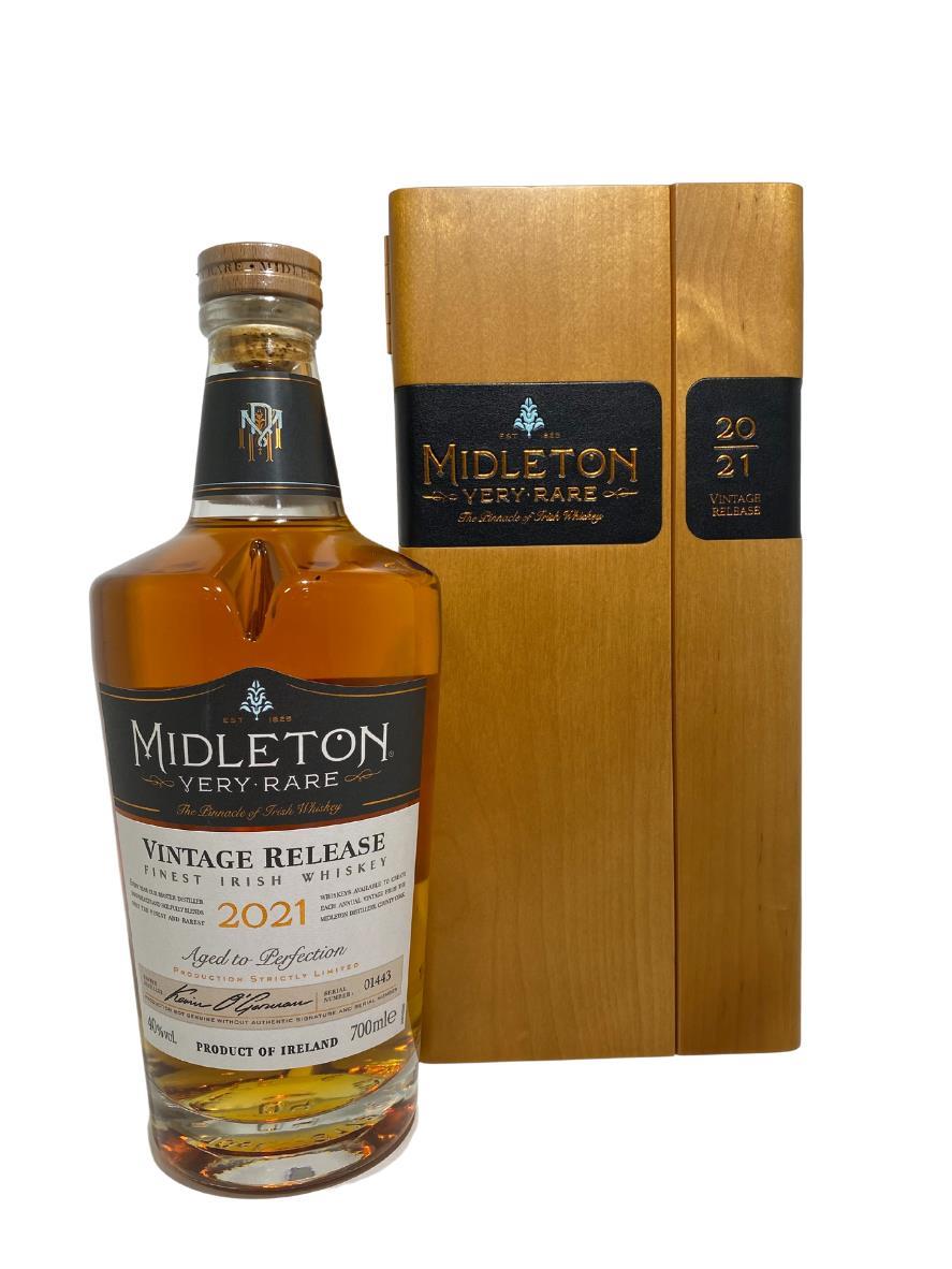 The 2021 edition to Ireland's most premium and beloved whiskey series; Midleton Very Rare. This is the 38th installment and the first release under Kevin O' Gorman appointed Master Distiller of the Midleton Distillery in 2020. Both the bottle and gift box are in very good condition, certificate and distillery invite are also included.Bottle number 1443