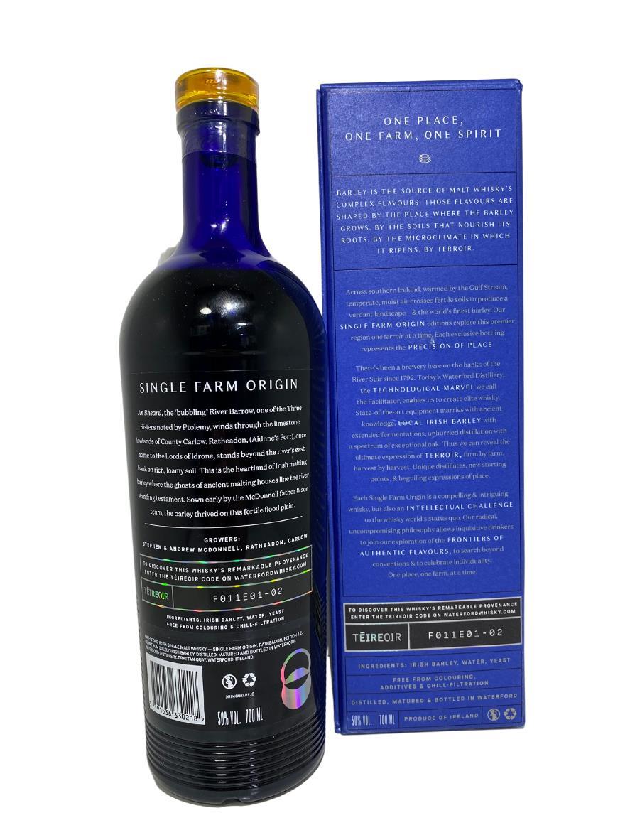 This is the second release of the highly sought after Ratheadon 1.2 release from Waterford Whisky Distillery. Distilled using the early-sown barley from the superb harvest of 2015 which was grown by father and son Stephen & Andrew McDonnell – third and fourth generation growers respectively – upon this unique terroir of a fertile flood plain of the River Barrow. The McDonnell family has farmed here at Ratheadon Farm for some five decades. This bottling, Edition 1.2, is again an Irish exclusive release as will be the case for all bottlings from Ratheadon. 10,000 bottles have been released.