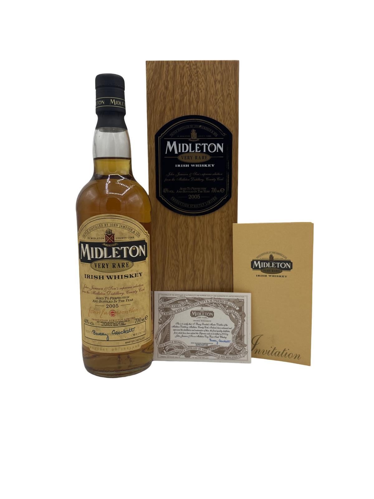 The Midleton Very Rare 2005, is a bottling brought out by the Midleton Distillery in Co. Cork. The ‘Midleton Very Rare’ range was launched in 1984 and a new vintage has been released every year since then. Barry Crockett started off the ‘Midleton Very Rare’ range while he was the Master Distiller of Midleton Distillery.The Bottle and Box are in good condition. The Midleton Very Rare range of whiskeys is a collection of highly regarded Irish whiskeys crafted at the Midleton Distillery in County Cork, Ireland. With a reputation for excellence, these whiskeys are known for their exceptional quality, craftsmanship, and limited availability. Characterized by smoothness, complexity, and depth of flavour, Midleton Very Rare often exhibits notes of ripe fruits, honey, vanilla, spices, and oak. The component casks are typically aged for around 12-27 years but each yearly batch is unique and for this reason the whiskeys are highly collectible. To this day the Midleton Very Rare series is still regarded as the pinnacle and benchmark for ultra-premium blended Irish whiskeys.