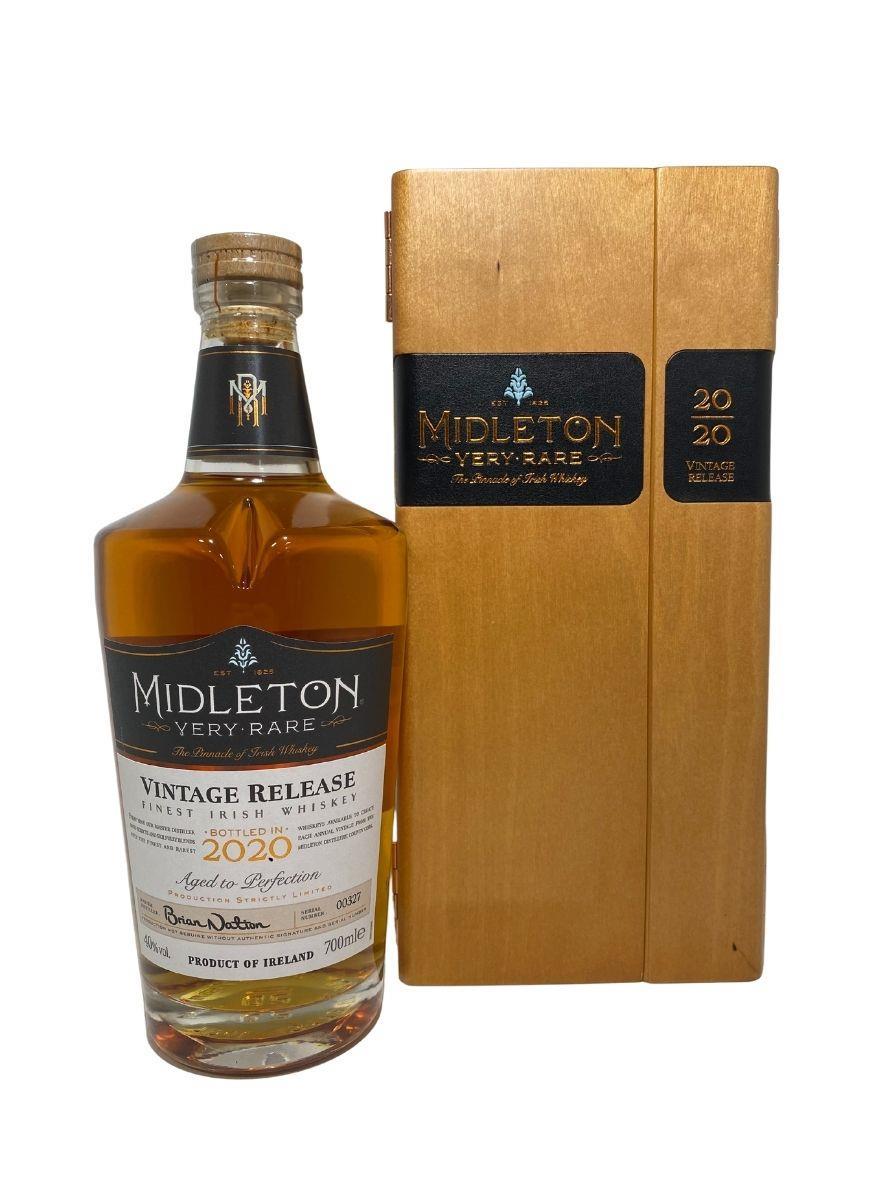 The Midleton Very Rare 2020, is a bottling brought out by the Midleton Distillery in Co. Cork. The ‘Midleton Very Rare’ range was launched in 1984 and a new vintage has been released every year since then. Barry Crockett started off the ‘Midleton Very Rare’ range while he was the Master Distiller of Midleton Distillery, in 2013 Barry Crockett retired from his role of Master Distiller. From 2014 onwards Brian Nation has been creating the ‘Midleton Very Rare’ range, maintaining its role as standard-bearer and pinnacle of Irish Whiskey. The bottle and gift box in great condition also include the cert and distillery invite. Bottle 327