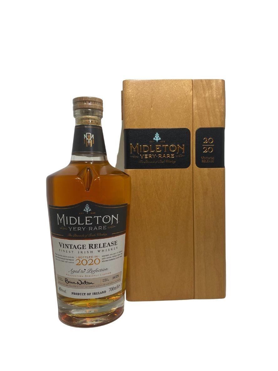 The Midleton Very Rare 2020, is a bottling brought out by the Midleton Distillery in Co. Cork. The ‘Midleton Very Rare’ range was launched in 1984 and a new vintage has been released every year since then. Barry Crockett started off the ‘Midleton Very Rare’ range while he was the Master Distiller of Midleton Distillery, in 2013 Barry Crockett retired from his role of Master Distiller. From 2014 onwards Brian Nation has been creating the ‘Midleton Very Rare’ range, maintaining its role as standard-bearer and pinnacle of Irish Whiskey. The bottle and gift box in great condition also include the cert and distillery invite. Bottle