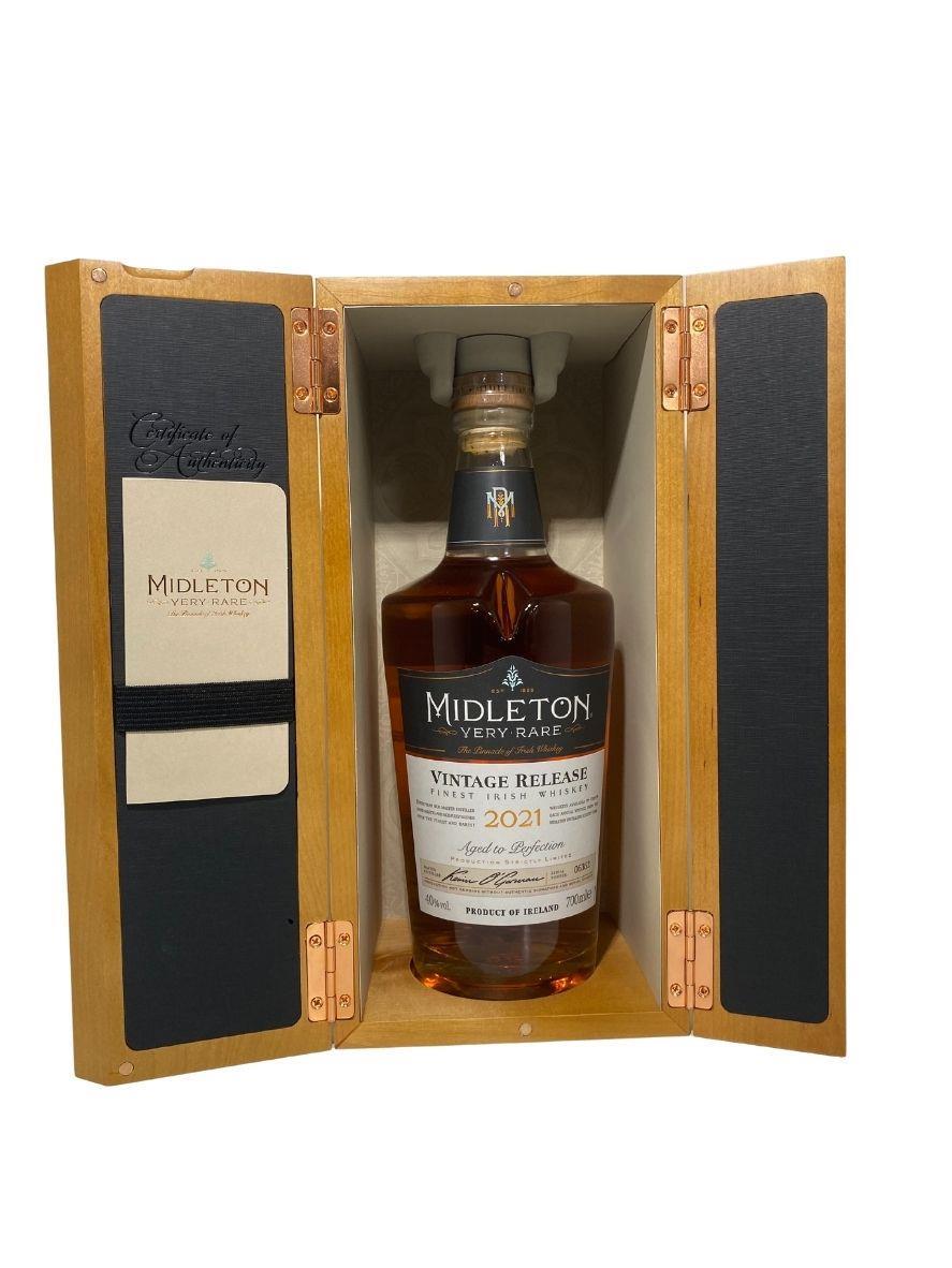 The 2021 edition to Ireland's most premium and beloved whiskey series; Midleton Very Rare. This is the 38th installment and the first release under Kevin O' Gorman appointed Master Distiller of the Midleton Distillery in 2020. Both the bottle and gift box are in very good condition, certificate and distillery invite are also included.Bottle number 6362