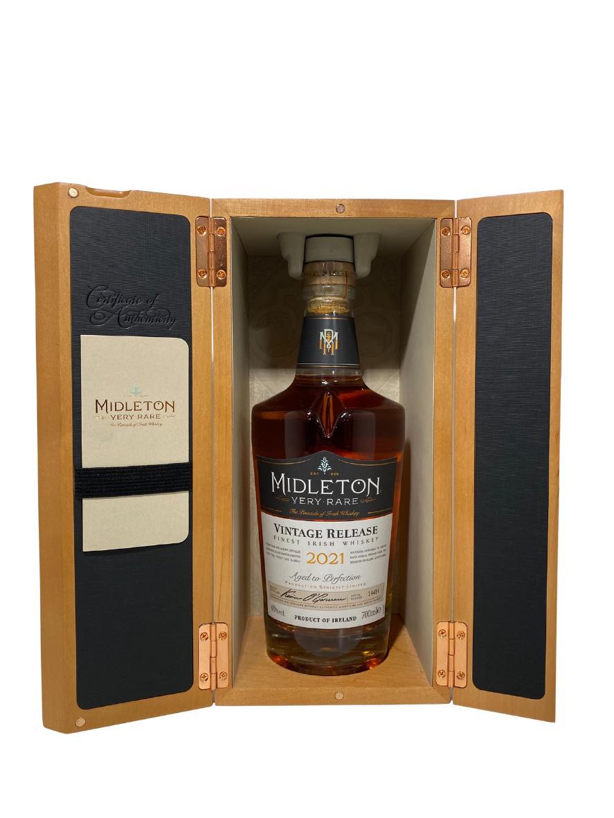 The 2021 edition to Ireland's most premium and beloved whiskey series; Midleton Very Rare. This is the 38th installment and the first release under Kevin O' Gorman appointed Master Distiller of the Midleton Distillery in 2020. Both the bottle and gift box are in very good condition, certificate and distillery invite are also included.Bottle number 14414