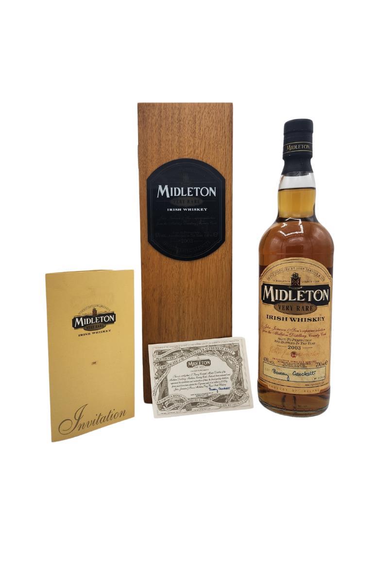 The Midleton Very Rare 2003, is a bottling brought out by the Midleton Distillery in Co. Cork. The ‘Midleton Very Rare’ range was launched in 1984 and a new vintage has been released every year since then. Barry Crockett started off the ‘Midleton Very Rare’ range while he was the Master Distiller of Midleton Distillery.The Bottle and box are in great condition. The Midleton Very Rare range of whiskeys is a collection of highly regarded Irish whiskeys crafted at the Midleton Distillery in County Cork, Ireland. With a reputation for excellence, these whiskeys are known for their exceptional quality, craftsmanship, and limited availability. Characterized by smoothness, complexity, and depth of flavour, Midleton Very Rare often exhibits notes of ripe fruits, honey, vanilla, spices, and oak. The component casks are typically aged for around 12-27 years but each yearly batch is unique and for this reason the whiskeys are highly collectible. To this day the Midleton Very Rare series is still regarded as the pinnacle and benchmark for ultra-premium blended Irish whiskeys.