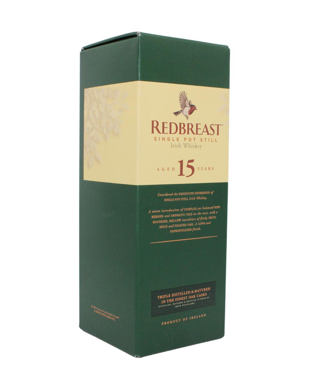 Redbreast 15 Year Old, originally a one-off release, became a permanent favorite due to its rich, heavy pot still character. Vatted from whiskeys aged 15-19 years in 1st fill bourbon & sherry casks. Gold Medal at the Irish Whiskey Masters 2023
