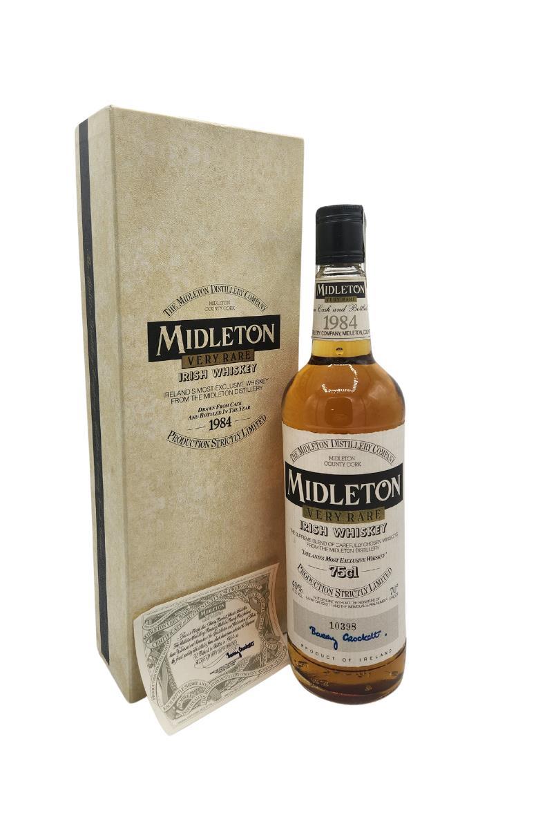 A rare and collectible bottle of Midleton Rare from the 1984 vintage when the master distiller was Barry Crockett. The Midleton Very Rare 1984 is the first edition of the Very Rare Series that is now a quintesential part of Irish whiskey history having begun in 1984 they have since released a new vintage every year. The Midleton Very Rare range of whiskeys is a collection of highly regarded Irish whiskeys crafted at the Midleton Distillery in County Cork, Ireland. With a reputation for excellence, these whiskeys are known for their exceptional quality, craftsmanship, and limited availability. Characterized by smoothness, complexity, and depth of flavour, Midleton Very Rare often exhibits notes of ripe fruits, honey, vanilla, spices, and oak. The component casks are typically aged for around 12-27 years but each yearly batch is unique and for this reason the whiskeys are highly collectible. To this day the Midleton Very Rare series is still regarded as the pinnacle and benchmark for ultra-premium blended Irish whiskeys.