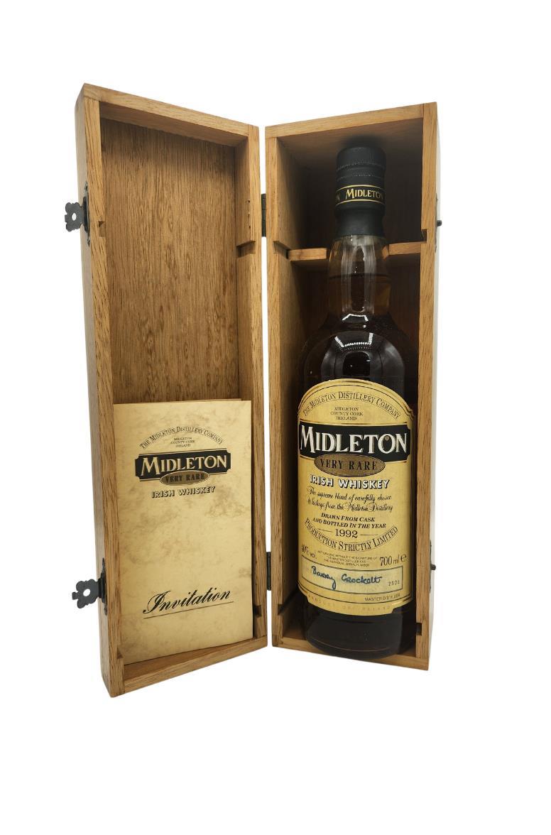 The Midleton Very Rare 1992, is a bottling brought out by the Midleton Distillery in Co. Cork. The ‘Midleton Very Rare’ range was launched in 1984 and a new vintage has been released every year since then. Barry Crockett started off the ‘Midleton Very Rare’ range while he was the Master Distiller of Midleton Distillery, The bottle and box are in excellent condition and include the distillery invite and certificate. Bottle number 2613