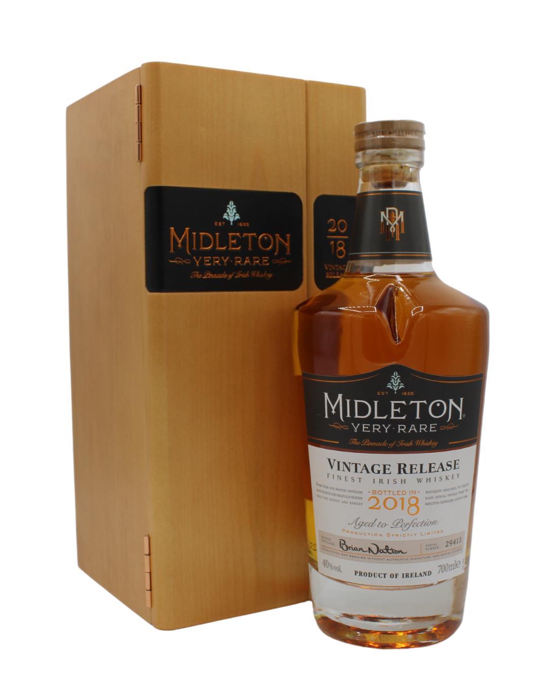 The Midleton Very Rare 2018 is a special release from the Midleton Distillery in County Cork. The ‘Midleton Very Rare’ range was first introduced in 1984, with a new vintage released annually since. This prestigious series was originally crafted by Barry Crockett during his tenure as Master Distiller at Midleton. After his retirement in 2013, Brian Nation took over the role and has continued to create the ‘Midleton Very Rare’ range, preserving its reputation as the pinnacle of Irish whiskey. The bottle, along with its original gift box, is in excellent condition and comes with the certificate of authenticity and a distillery invite.
