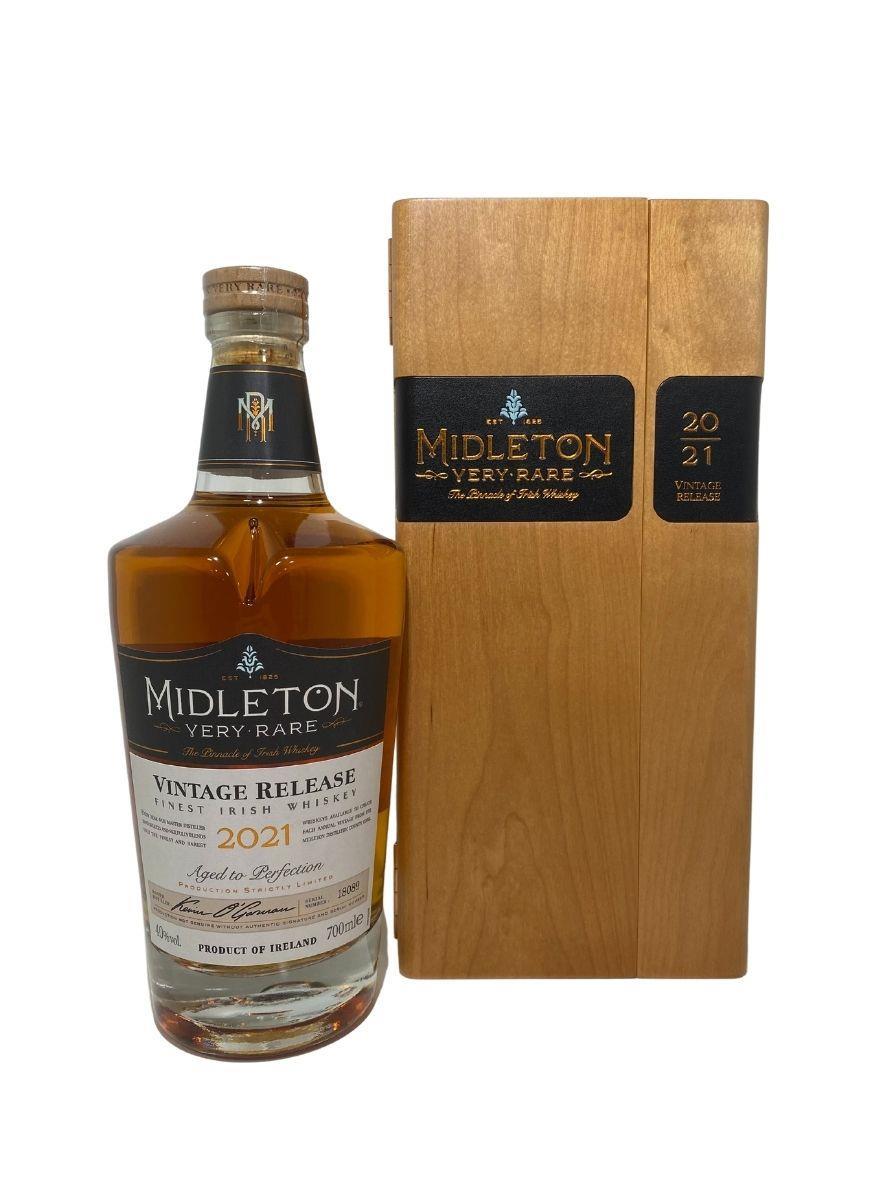 The 2021 edition to Ireland's most premium and beloved whiskey series; Midleton Very Rare. This is the 38th installment and the first release under Kevin O' Gorman appointed Master Distiller of the Midleton Distillery in 2020. Both the bottle and gift box are in very good condition, certificate and distillery invite are also included. Bottle number 18089