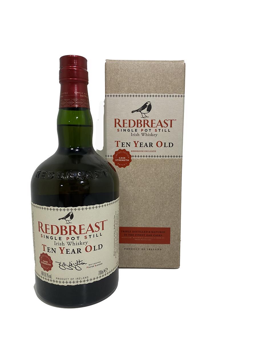 Launched to celebrate the 30th anniversary of the revival of the Redbreast brand, Redbreast 10 was resurrected. Made from a mash of malted and unmalted barley and then triple distilled in copper pot stills, Redbreast 10-Year-Old highlights some of the more distinctive qualities of traditional Single Pot Still whiskey. Matured in a combination of bourbon seasoned American oak barrels and oloroso sherry-seasoned Spanish oak butts, this historic redbreast style is a joy to behold in each and every bottle. Both the bottle and gift box are in very good condition.