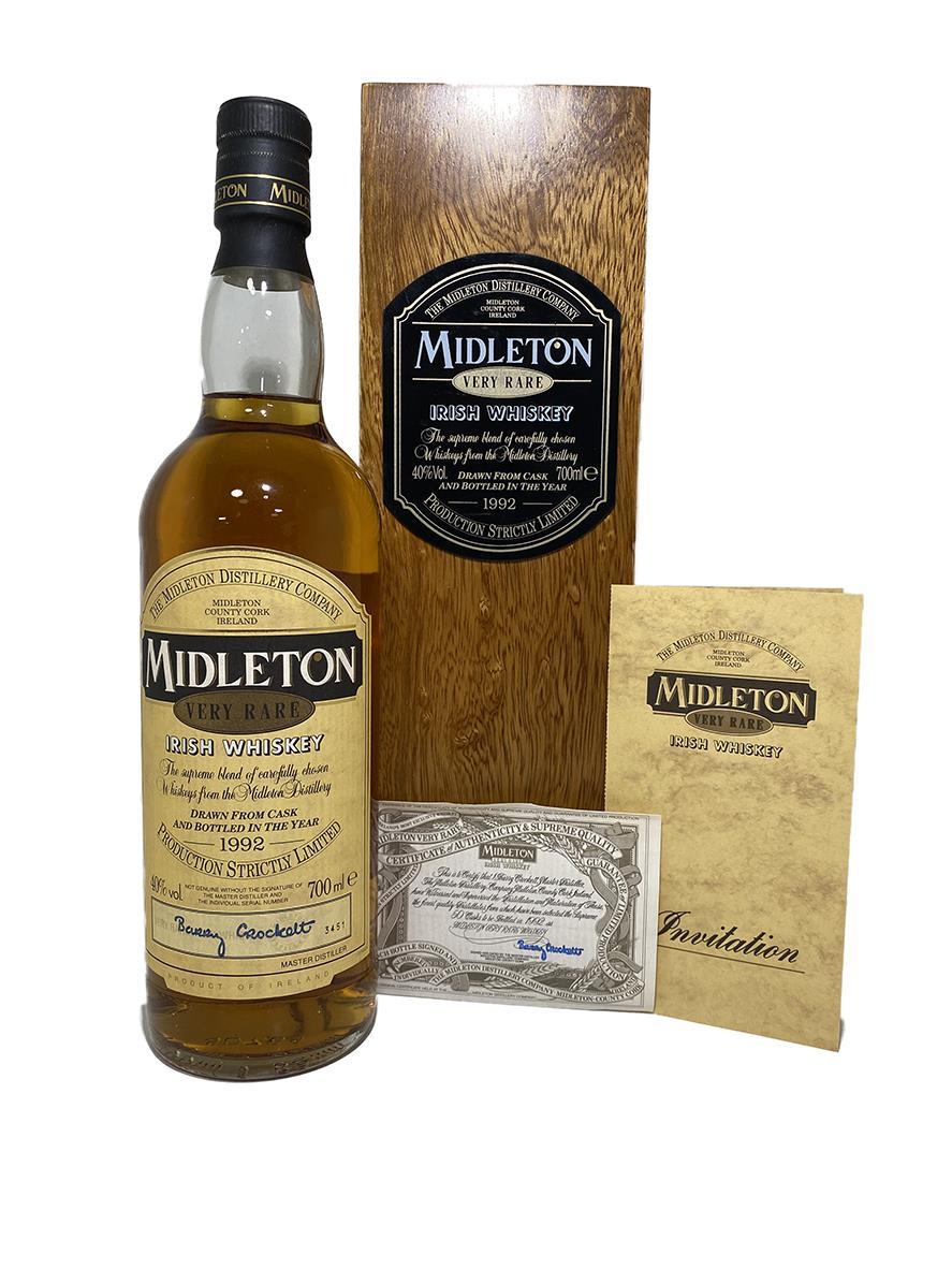 The Midleton Very Rare 1992, is a bottling brought out by the Midleton Distillery in Co. Cork. The ‘Midleton Very Rare’ range was launched in 1984 and a new vintage has been released every year since then. Barry Crockett started off the ‘Midleton Very Rare’ range while he was the Master Distiller of Midleton Distillery, The bottle and box are in excellent condition and include the distillery invite and certificate. Bottle number 3451.