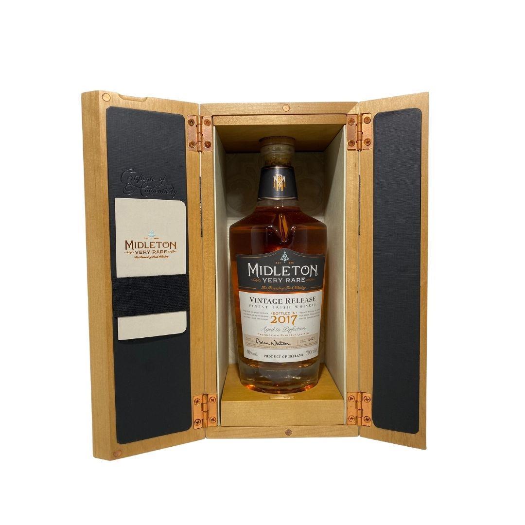 The Midleton Very Rare 2017, is a bottling brought out by the Midleton Distillery in Co. Cork. The ‘Midleton Very Rare’ range was launched in 1984 and a new vintage has been released every year since then. Barry Crockett started off the ‘Midleton Very Rare’ range while he was the Master Distiller of Midleton Distillery, in 2013 Barry Crockett retired from his role of Master Distiller. From 2014 onwards Brian Nation has been creating the ‘Midleton Very Rare’ range, maintaining its role as standard-bearer and pinnacle of Irish Whiskey. The bottle and gift box in great condition also include the cert and distillery invite. Bottle number 429