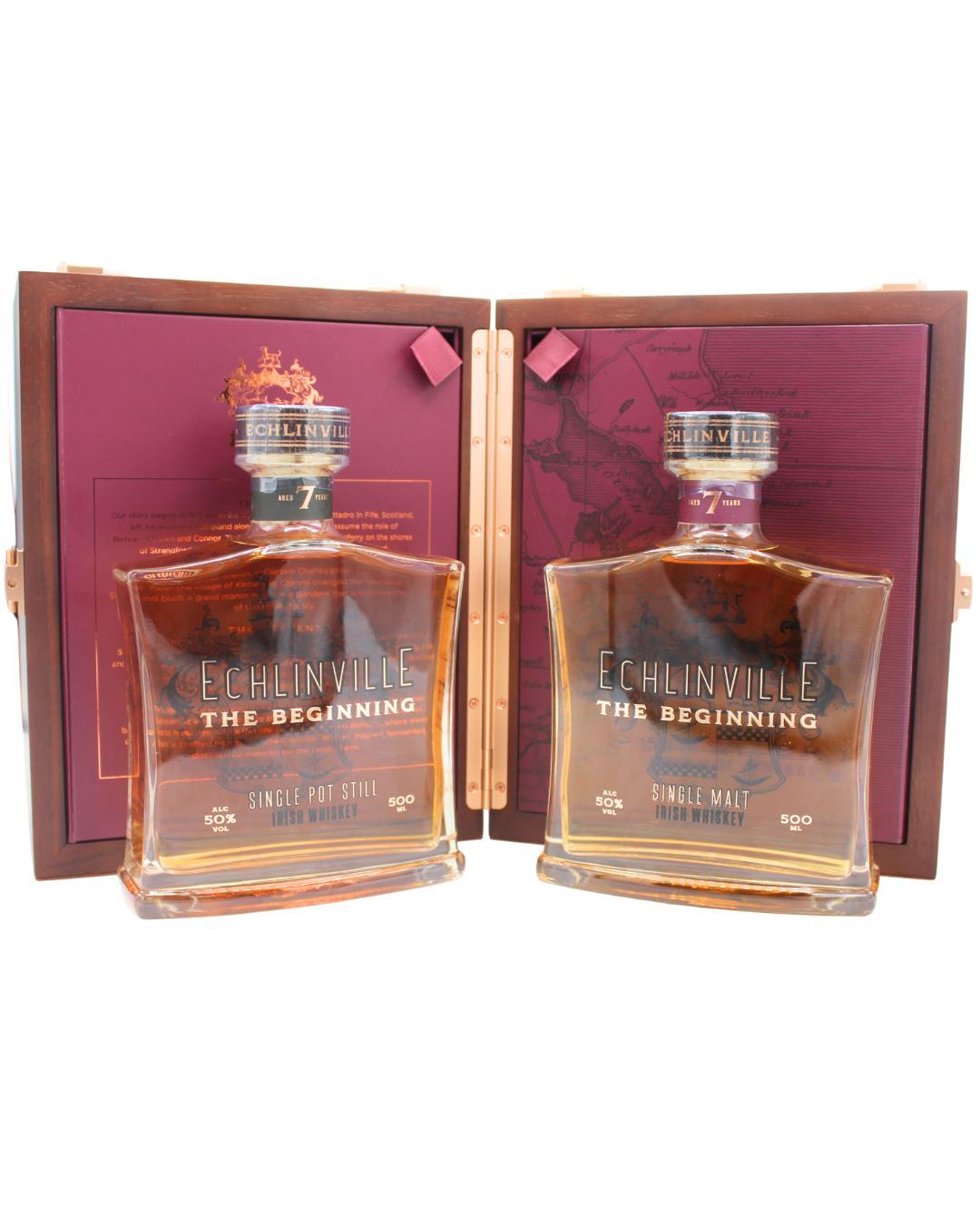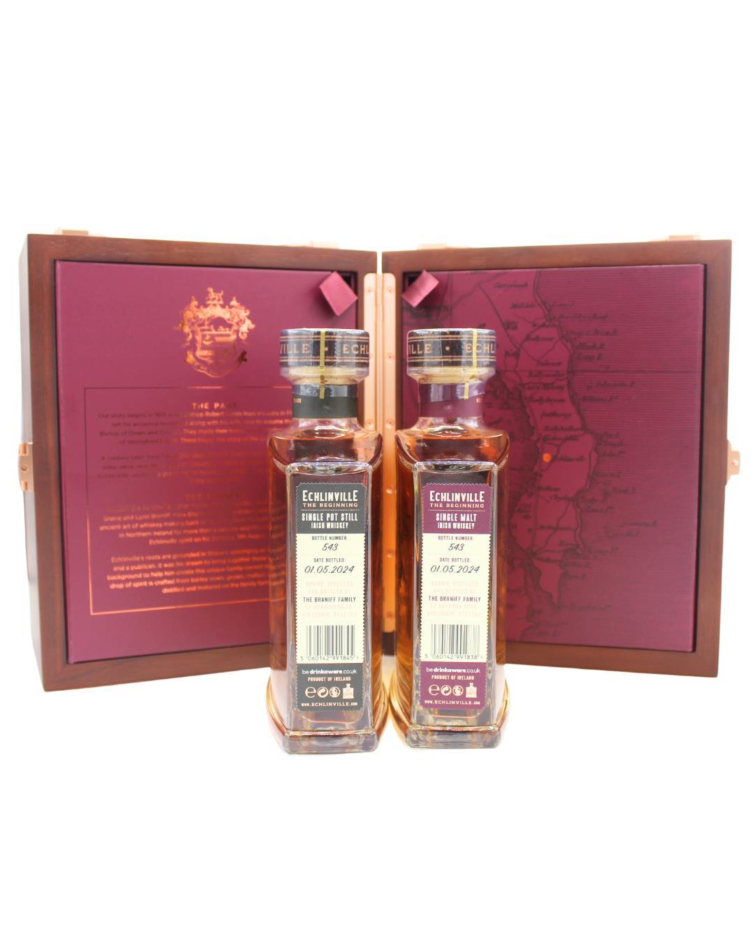 The inaugural release of Single Estate Single Pot Still and Single Malt Whiskeys from Echlinville Distillery. Distilled entirely from barley grown and malted on their family-run farm, this field-to-glass whiskey is a true labor of love. Presented in a beautiful wooden case, this set includes: