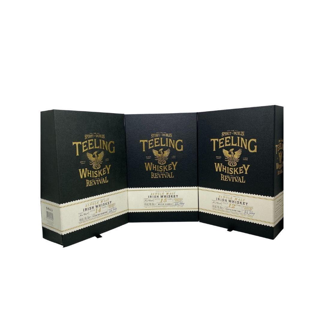 The final 3 releases from the Teeling Revival Series. The third release of the Teeling Revival range, this time in the form of a 14 year old whiskey.Teeling's third limited release celebrating the revival of whiskey distilling in Dublin marks the 18-month anniversary of the moment it was brought back - when Teeling distillery opened in The Liberties. Initially matured in ex-bourbon barrels, it's rather unusually been finished in Pineau des Charentes barrels! Pineau des Charentes,is a type of fortified wine made from grape must and Cognac eau-de-vie. Teeling Revival IV 15 year old,A superb release in the hugely popular Revival series from Teeling, and winner of the top accolade at the 2017 Irish Whiskey Awards. This has been finished in muscat wine barrels for a final period of 12 months and has been aged for a total of 15 years. It has a gloriously fruity flavour with great balance, smoothness and a luscious mouthfeel. Limited to just 10,000 bottles.The fifth and final release in Teeling's Revival Series. Volume V is a 12 year old single malt that has been finished in both Cognac and brandy casks. The initial maturation was in ex-Bourbon barrels and the whiskey has been bottled at 46% without chill filtration. Just 15,000 decanter style bottles have been released.