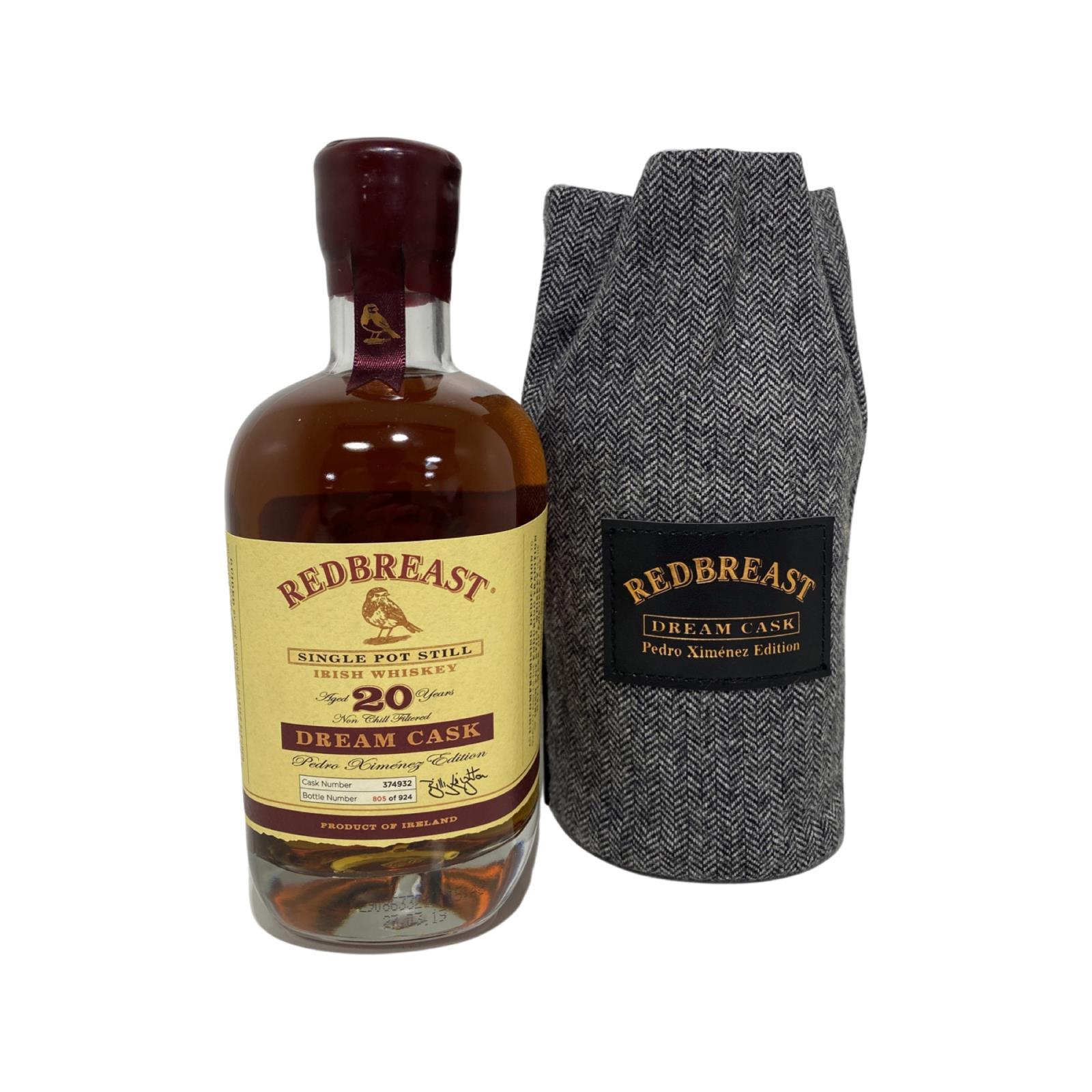 Created through a combination of hand selected Bourbon and Sherry casks aged between 20 to 33 years, marrying the vatting in a Pedro Ximénez Sherry and Bourbon seasoned Butt. Guided by the vision of Billy Leighton, Redbreast Dream Cask Pedro Ximenez Edition is a story 33 years in the making and four casks in the shaping. Bottle number 805/924
