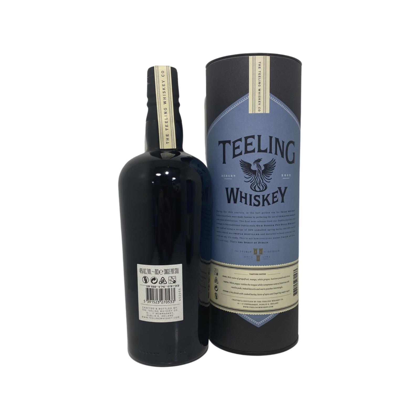 Teeling Single Pot Still, Dublin's spirit re-born. Crafted using a recipe of 50% unmalted and 50% malted barley matured in a combination of virgin oak, ex-wine and ex-bourbon barrels. An abundance of orchard fruit flavours with a hint of peppery spice!