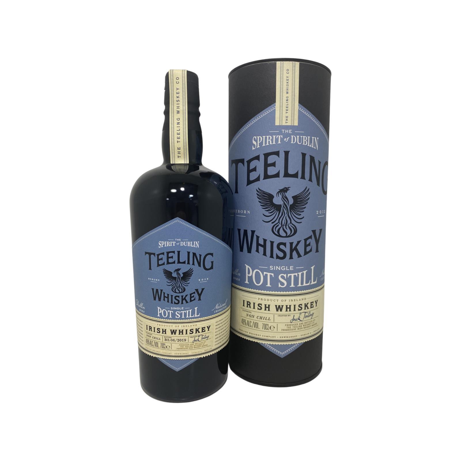 Teeling Single Pot Still, Dublin's spirit re-born. Crafted using a recipe of 50% unmalted and 50% malted barley matured in a combination of virgin oak, ex-wine and ex-bourbon barrels. An abundance of orchard fruit flavours with a hint of peppery spice!