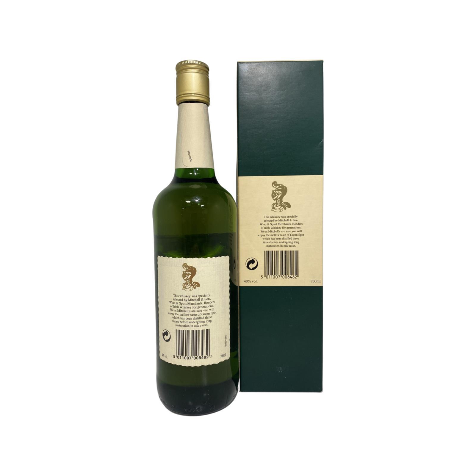 Presumed to be from the 2000s this bottle of Green spot is in the older style bottling and label but will has the Fantastic 100% Pot Still whiskey like the newer bottlings. Green Spot is a 100% pure pot still whiskey that can trace its roots to the early 1900s, when Jamesons sold whiskey to wine merchants Mitchell & Son. In those days it was common practice for wine merchants and publicans to bottle their own whiskey but sell it under the distiller's brand name. Green Spot became as famous as Jameson itself and it is one of just a few old merchant brands that is still available.