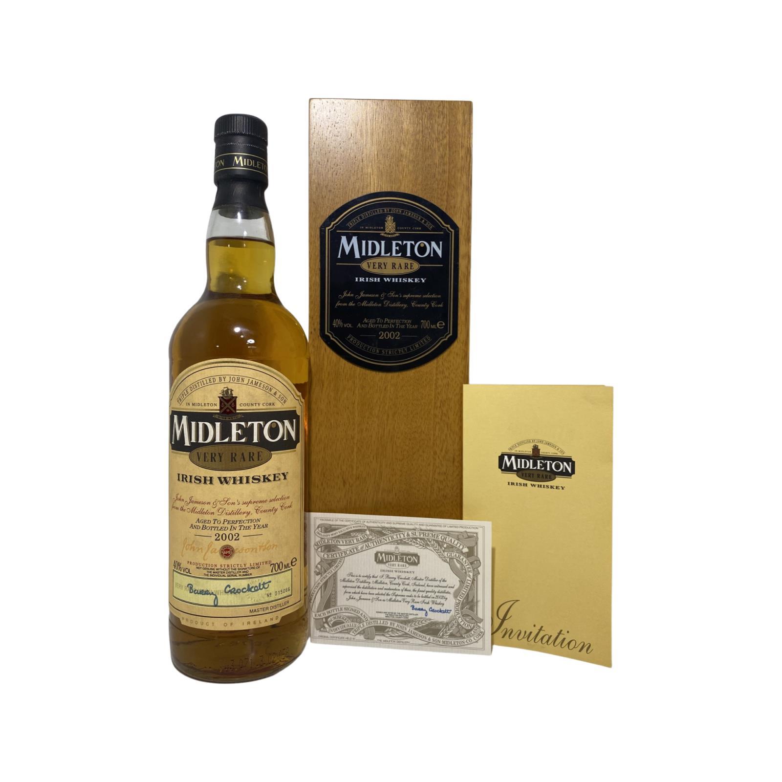 The Midleton Very Rare 2002, is a bottling brought out by the Midleton Distillery in Co. Cork. The ‘Midleton Very Rare’ range was launched in 1984 and a new vintage has been released every year since then. Barry Crockett started off the ‘Midleton Very Rare’ range while he was the Master Distiller of Midleton Distillery.The Bottle and box are in great condition. Bottle Number 15066