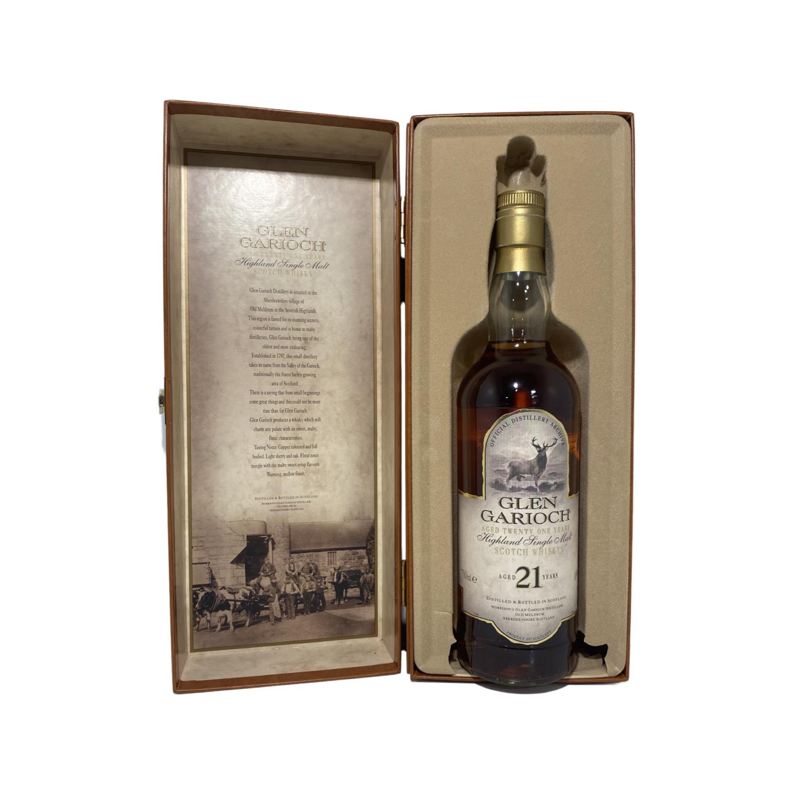Sadly now discontinued, this is a very nicely presented Glen Garioch 21 Year Old from the old original tall bottle style. The distillery, which originally incorporated a brewery and tannery, stands on the very edge of the town Oldmeldrum in Aberdeenshire.