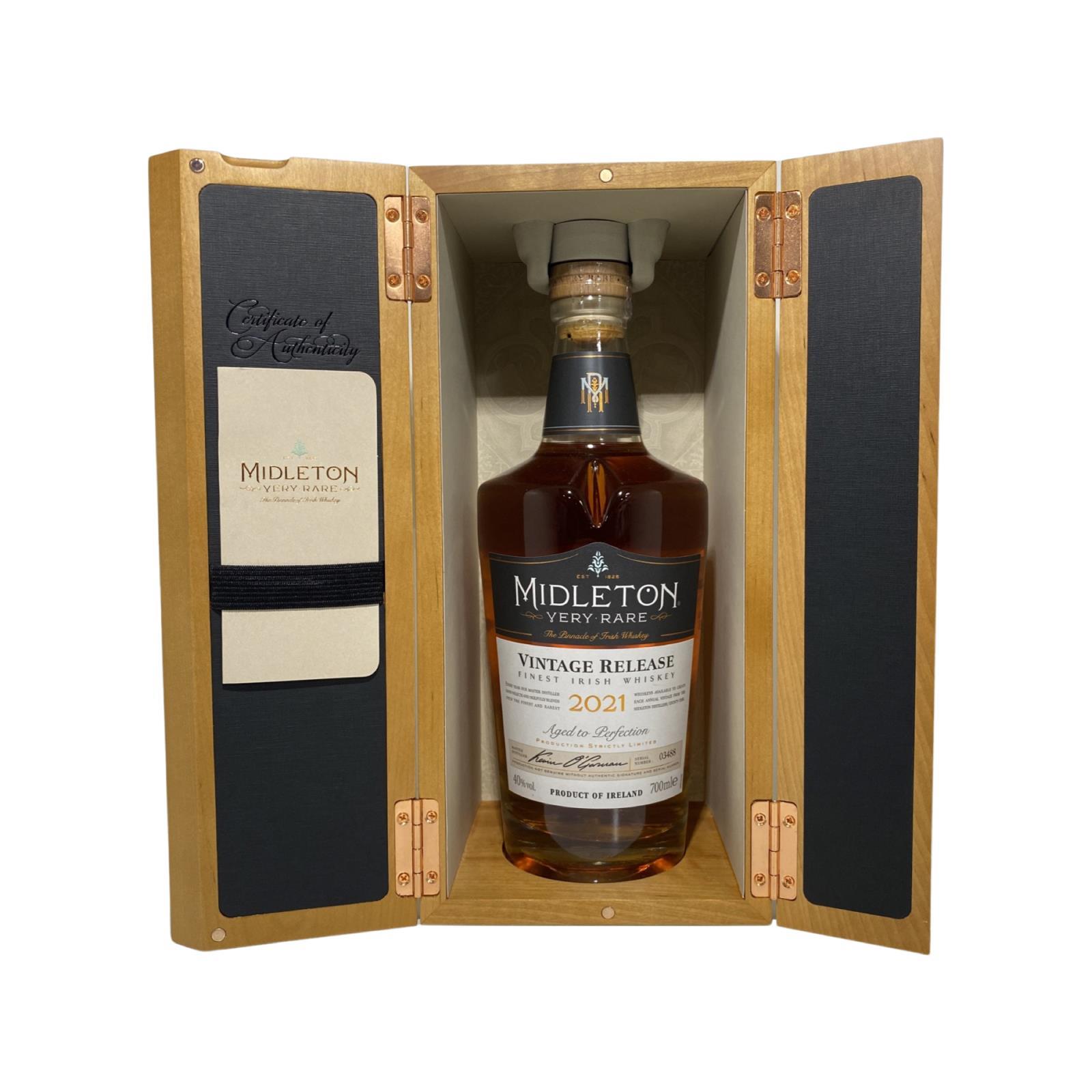The 2021 edition to Ireland's most premium and beloved whiskey series; Midleton Very Rare. This is the 38th installment and the first release under Kevin O' Gorman appointed Master Distiller of the Midleton Distillery in 2020. Both the bottle and gift box are in very good condition, certificate and distillery invite are also included. Bottle number 3488