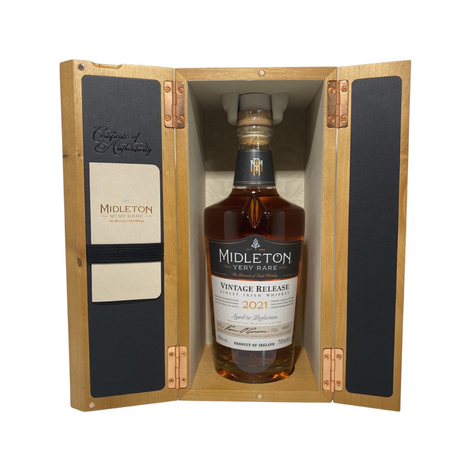 The 2021 edition to Ireland's most premium and beloved whiskey series; Midleton Very Rare. This is the 38th installment and the first release under Kevin O' Gorman appointed Master Distiller of the Midleton Distillery in 2020. Both the bottle and gift box are in very good condition, certificate and distillery invite are also included. Bottle number 4517
