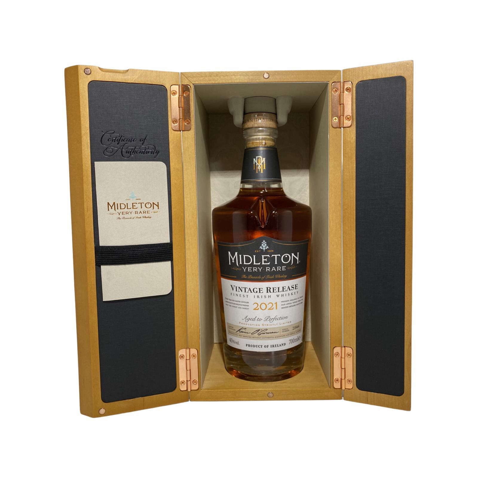 The 2021 edition to Ireland's most premium and beloved whiskey series; Midleton Very Rare. This is the 38th installment and the first release under Kevin O' Gorman appointed Master Distiller of the Midleton Distillery in 2020. Both the bottle and gift box are in very good condition, certificate and distillery invite are also included. Bottle number 21844