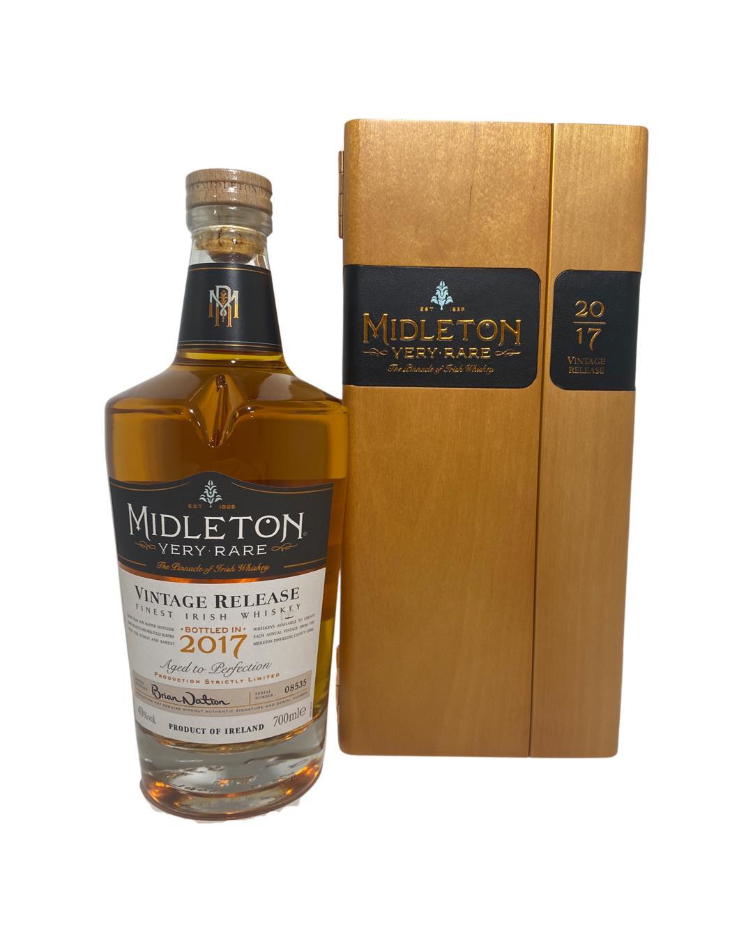 The Midleton Very Rare 2017, is a bottling brought out by the Midleton Distillery in Co. Cork. The ‘Midleton Very Rare’ range was launched in 1984 and a new vintage has been released every year since then. Barry Crockett started off the ‘Midleton Very Rare’ range while he was the Master Distiller of Midleton Distillery, in 2013 Barry Crockett retired from his role of Master Distiller. From 2014 onwards Brian Nation has been creating the ‘Midleton Very Rare’ range, maintaining its role as standard-bearer and pinnacle of Irish Whiskey. The bottle and gift box in great condition also include the cert and distillery invite. Bottle number 08535