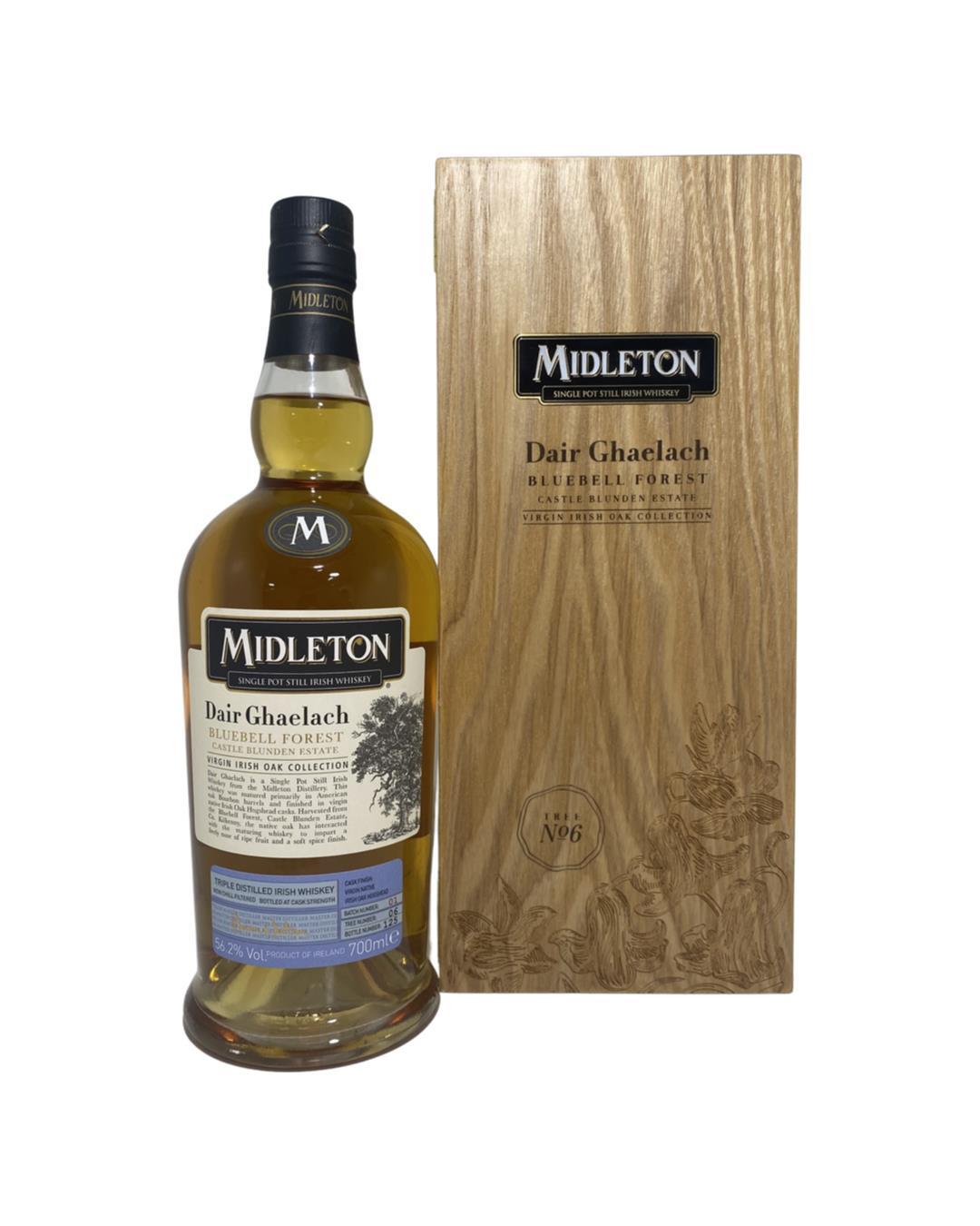 The highly anticipated second series of the Dair Ghaelach range to come from Midleton Distillery - the new Dair Ghaelach Bluebell Forest series. This exceptional whiskey is comprised of Single Pot Still distillates aged between 12-23 years that have been matured primarily in American oak Bourbon barrels, before being finished in native virgin Irish oak casks harvested from Bluebell Forest, Castle Blunden Estate, Co.Kilkenny. Uniquely each bottle can be traced back to one of six individual 130 year old oak trees that were carefully felled in the Bluebell Forest in May 2013. This whiskey undoubetly has the perfect balance between spicy single pot still Irish whiskey and Irish oak characteristics!