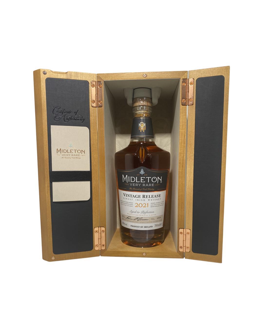 The 2021 edition to Ireland's most premium and beloved whiskey series; Midleton Very Rare. This is the 38th installment and the first release under Kevin O' Gorman appointed Master Distiller of the Midleton Distillery in 2020. Both the bottle and gift box are in very good condition, certificate and distillery invite are also included. Bottle number 10974