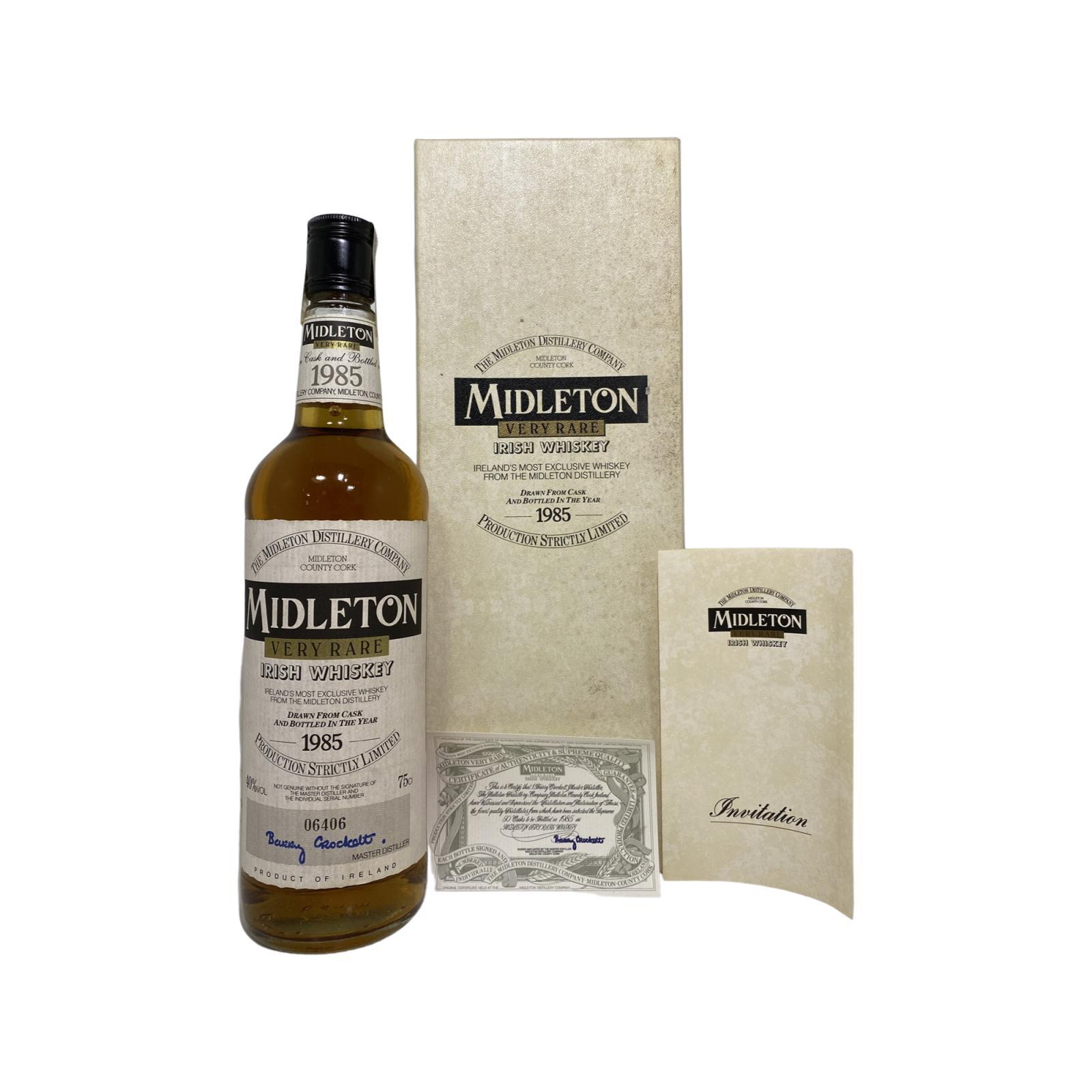 A rare and collectable bottle of Midleton Rare from the 1985 vintage when the master distiller was Barry Crockett. The Midleton Very Rare 1985 is the second edition of the Very Rare Series that began in 1984 whereby a new vintage is released every year. Box damaged as can be seen in the photo.